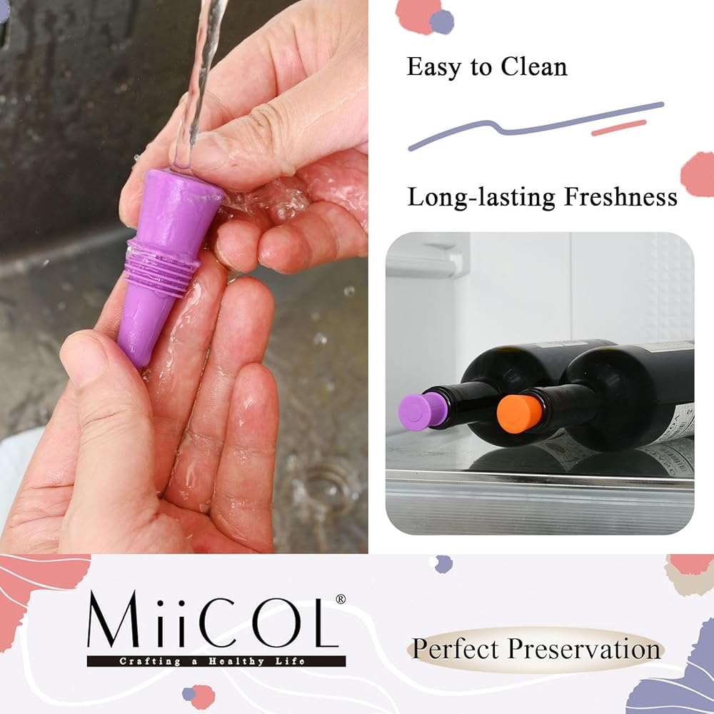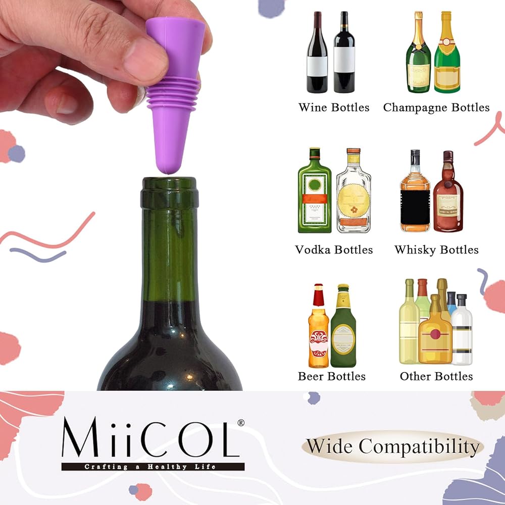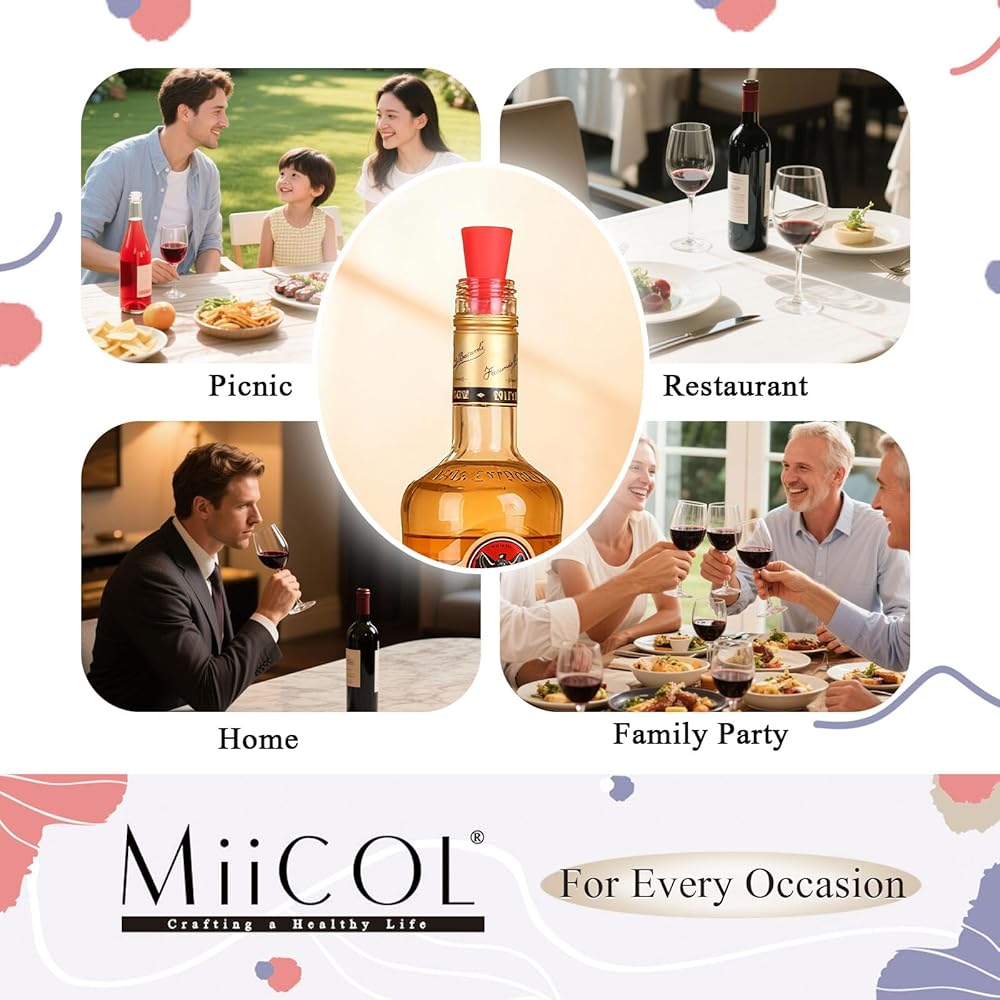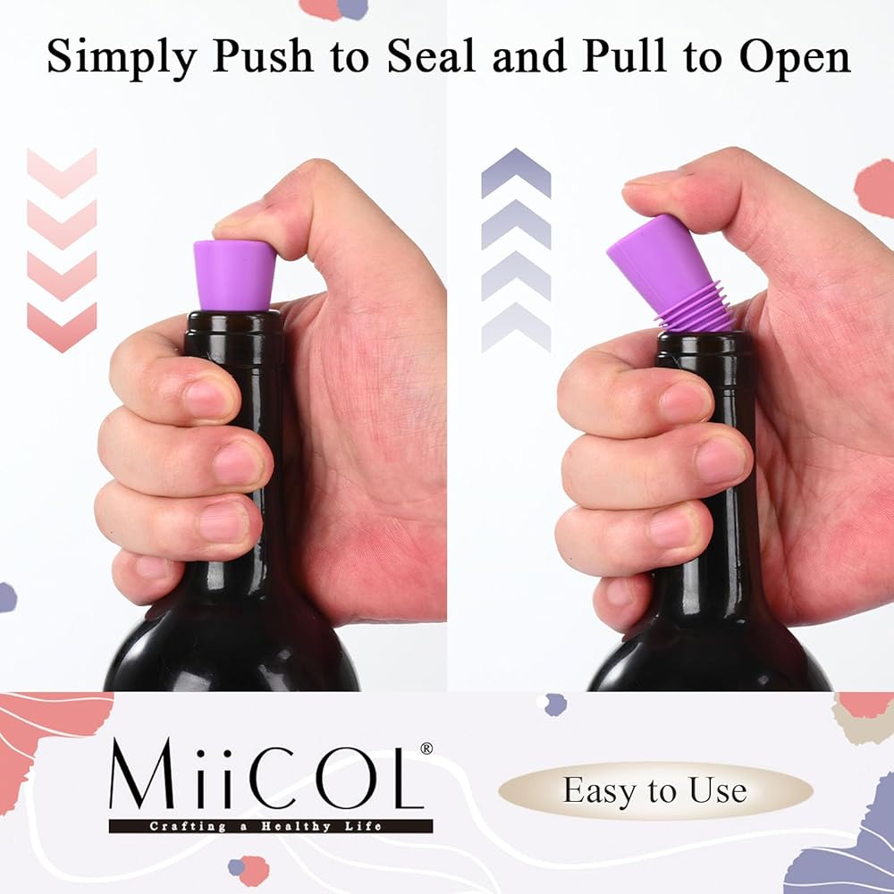 مناسبة لمجموعة متنوعة من أنواع الزجاجات - يبلغ مقاس سدادة النبيذ MiiCOL هذه 11.43 سم ارتفاعًا × 4.17 سم عرضًا وهي مناسبة لمجموعة متنوعة من أنواع الزجاجات، مثل النبيذ والنبيذ الفوار والشمبانيا والمزيد.