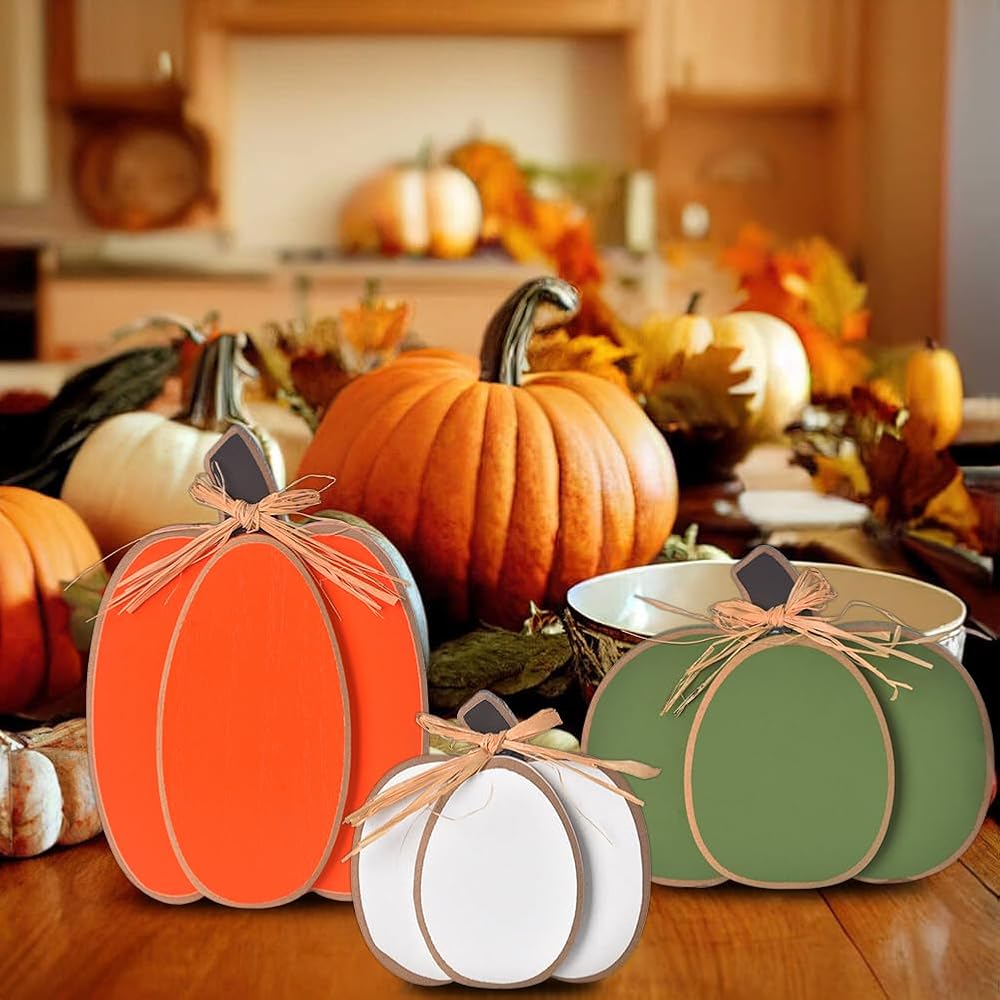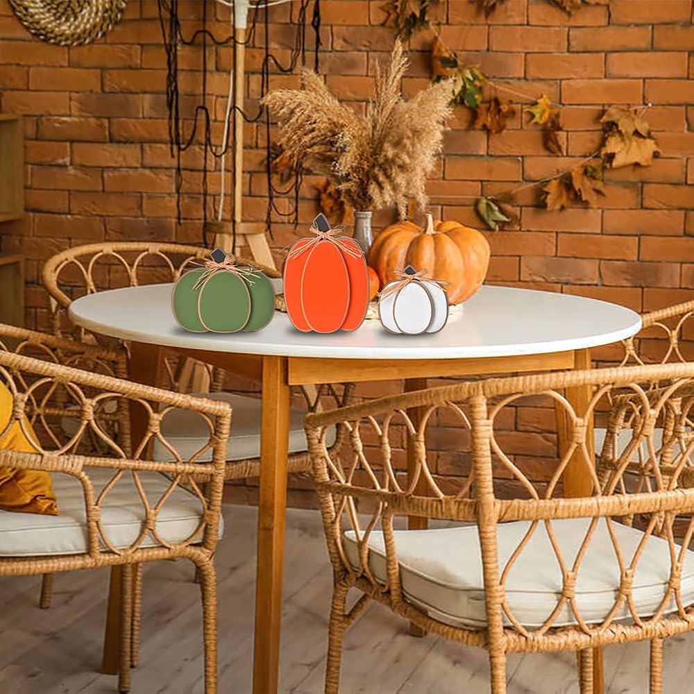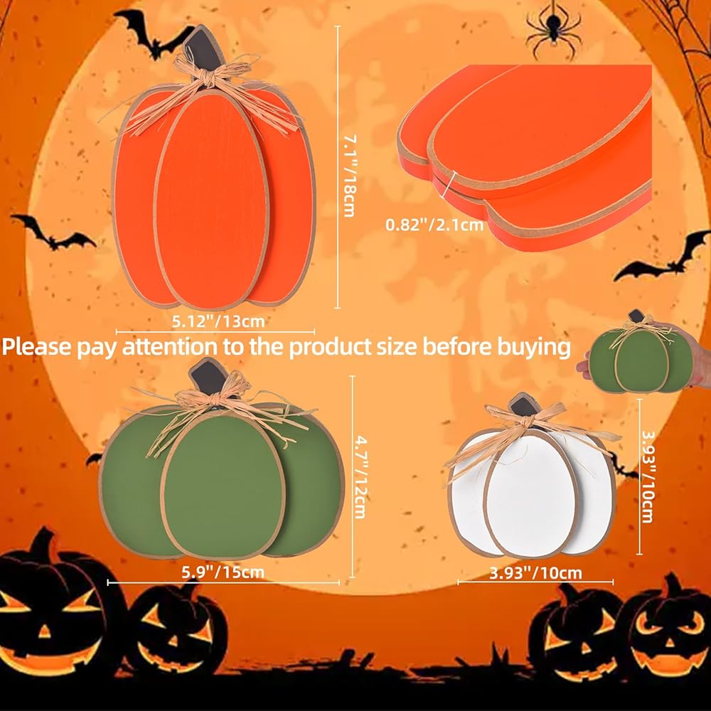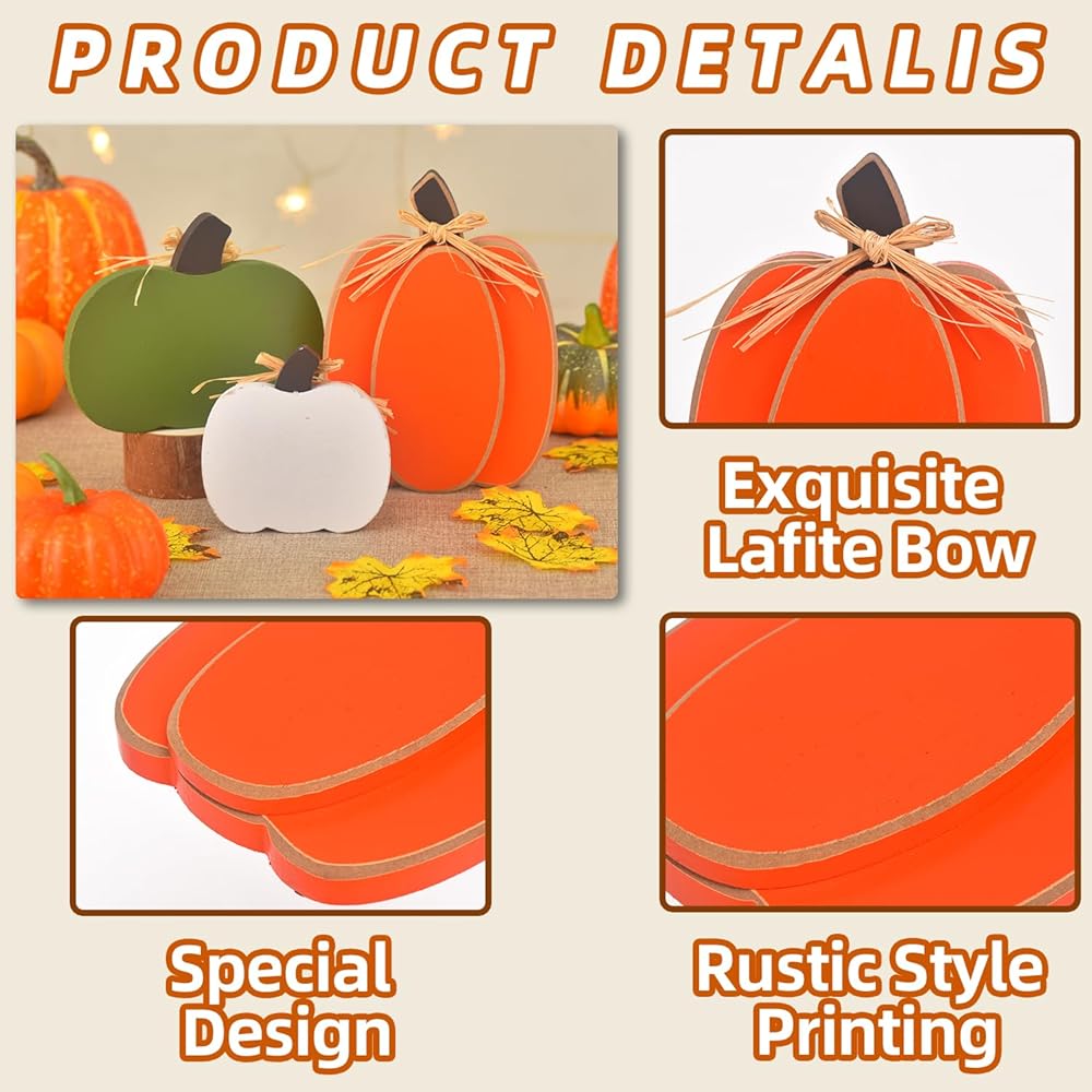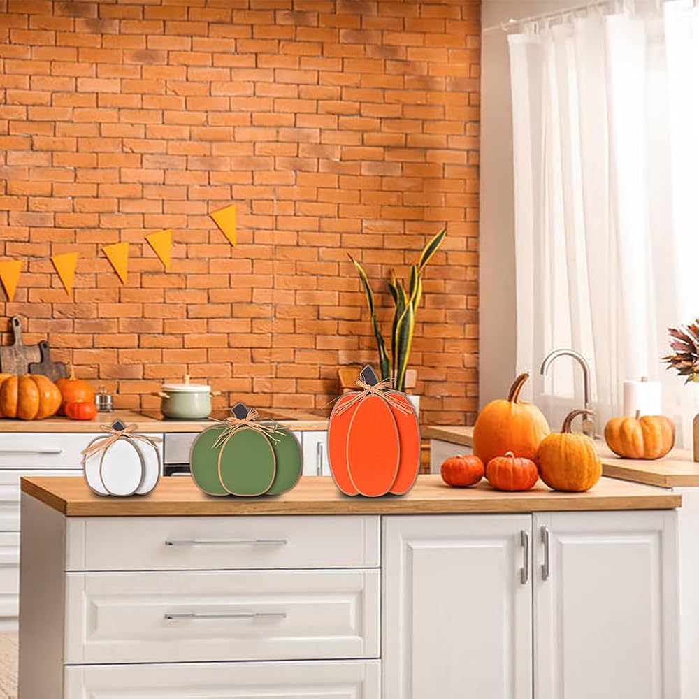 ديكورات عيد الشكر للمنزل، 3 قطع من ديكور الخريف الريفي، مجموعة مكعبات لافتة على سطح الطاولة من اليقطين الخشبي، ديكور صينية متدرج للخريف للهالوين قطعة مركزية لطاولة حصاد المزرعة (3 قطع من اليقطين)