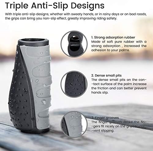 【مادة عالية الجودة 】مقابض مقود الدراجة مصنوعة من المطاط اللدن حراريًا وسبائك الألومنيوم، يمكنها عزل يديك عن الصدمات والاهتزاز، وتخفف من تعب اليد أثناء الركوب الطويل. إنها ذات مقاومة كبيرة ضد الانزلاق، نتيجة للامتصاص القوي. الآن، لا داعي للقلق بشأن انزلاق يديك فجأة في يوم ممطر.