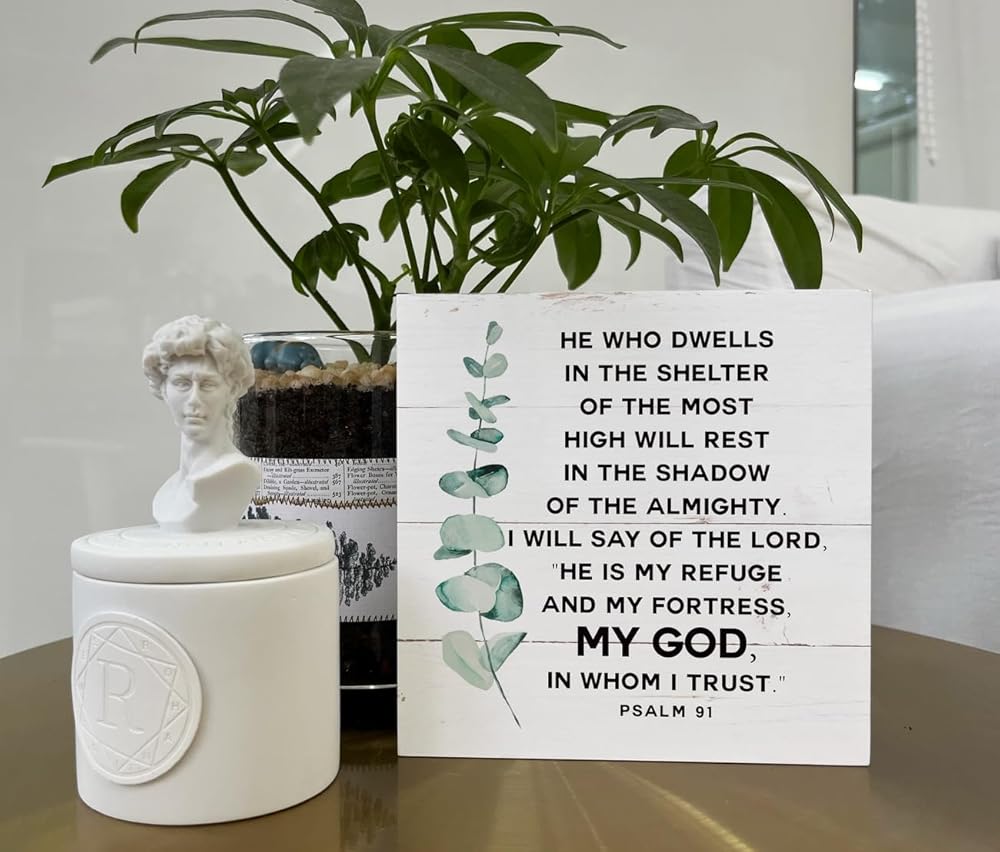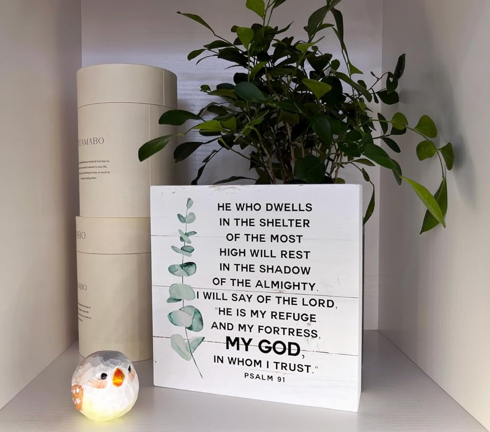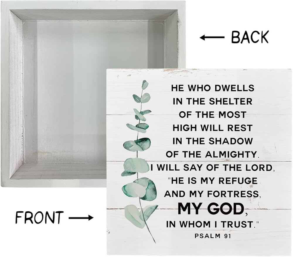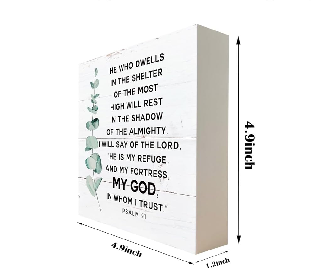 علامة مسيحية، ديكور الكتاب المقدس، ديكور مكتب علامة صندوق خشبي، علامات فنية للطاولة الدينية للمزرعة، ديكور منزلي إيجابي للرف، علامة آية الكتاب المقدس المزخرفة، هو الذي يسكن في المأوى - مزمور 91