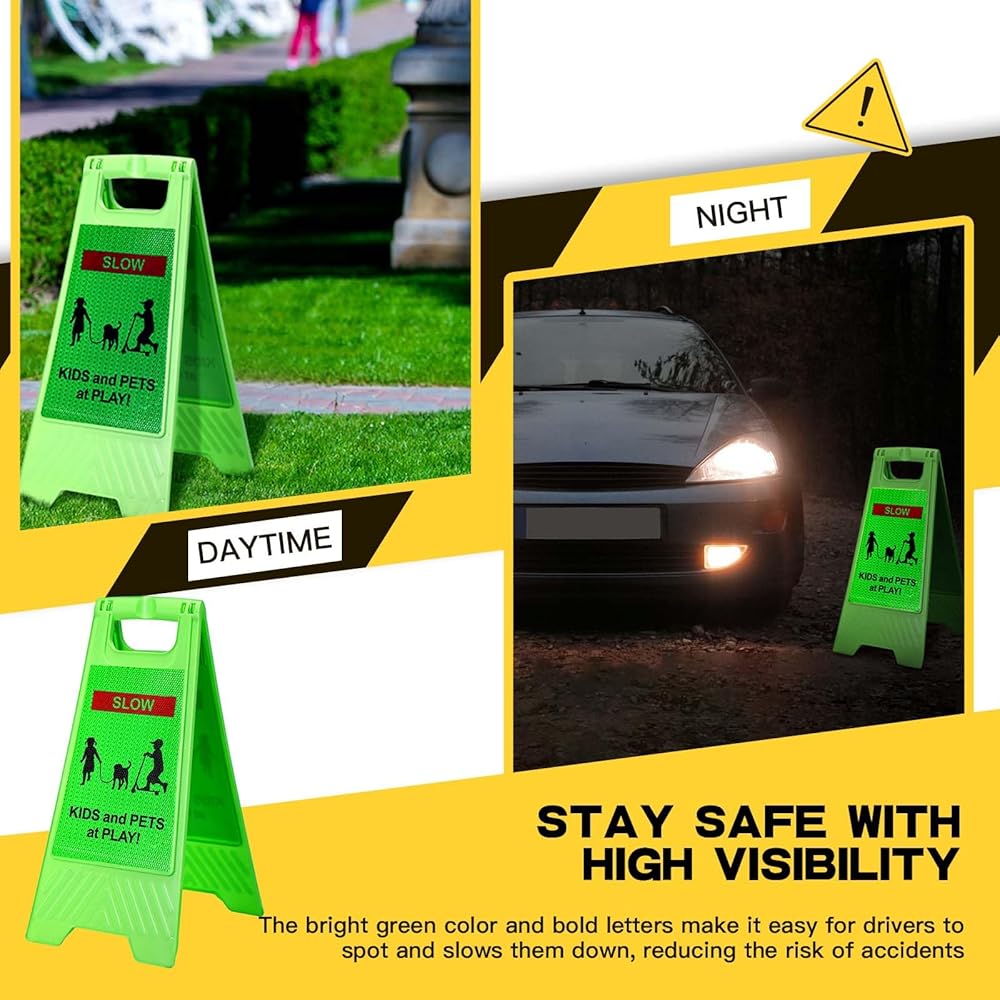 The slow down signs for neighborhoods are ideal for use in many places, just placed in any location to alert drivers to the presence of children or other vulnerable road users.