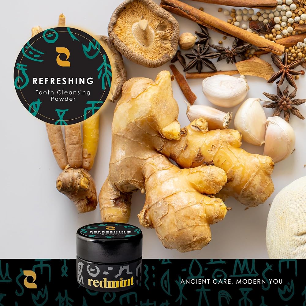 مسحوق تنظيف الأسنان العشبي المنعش ريدمينت | إعادة اكتشاف صحة الفم مع فوائد الزنجبيل الطبيعية | 15 مل