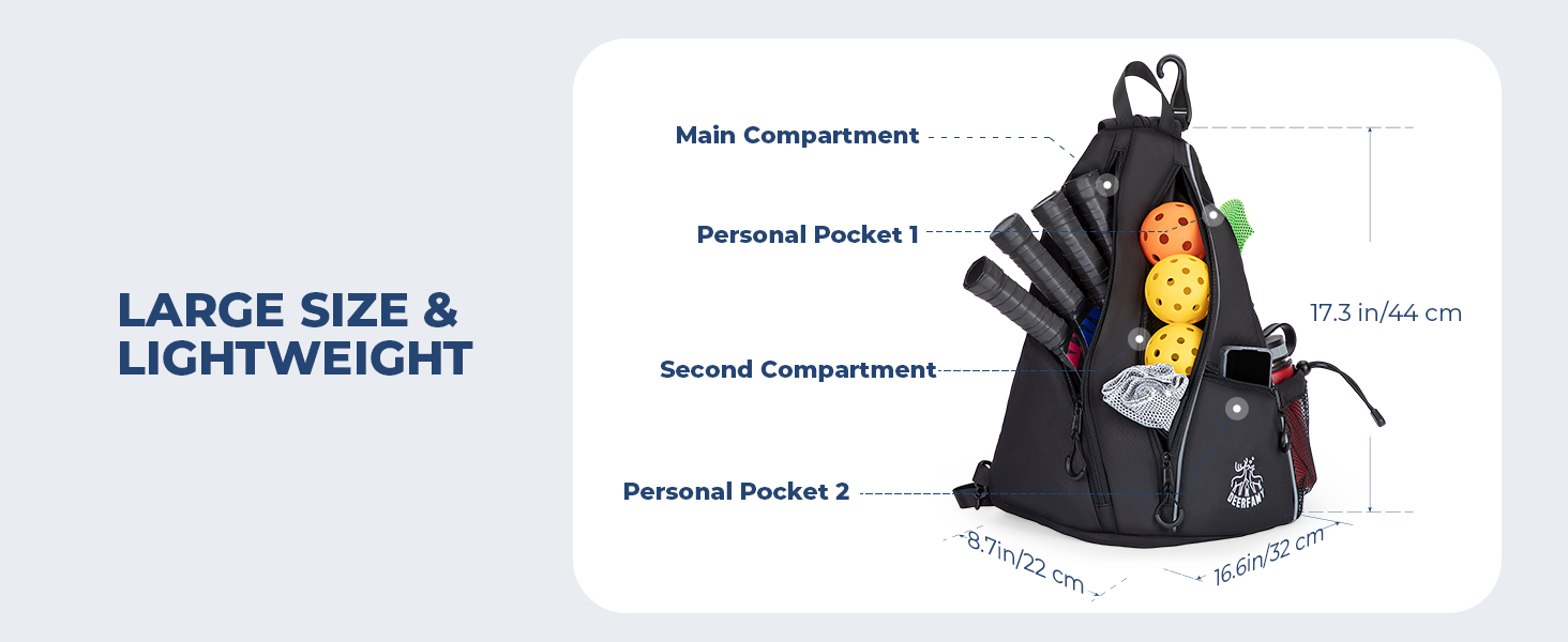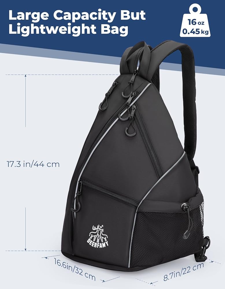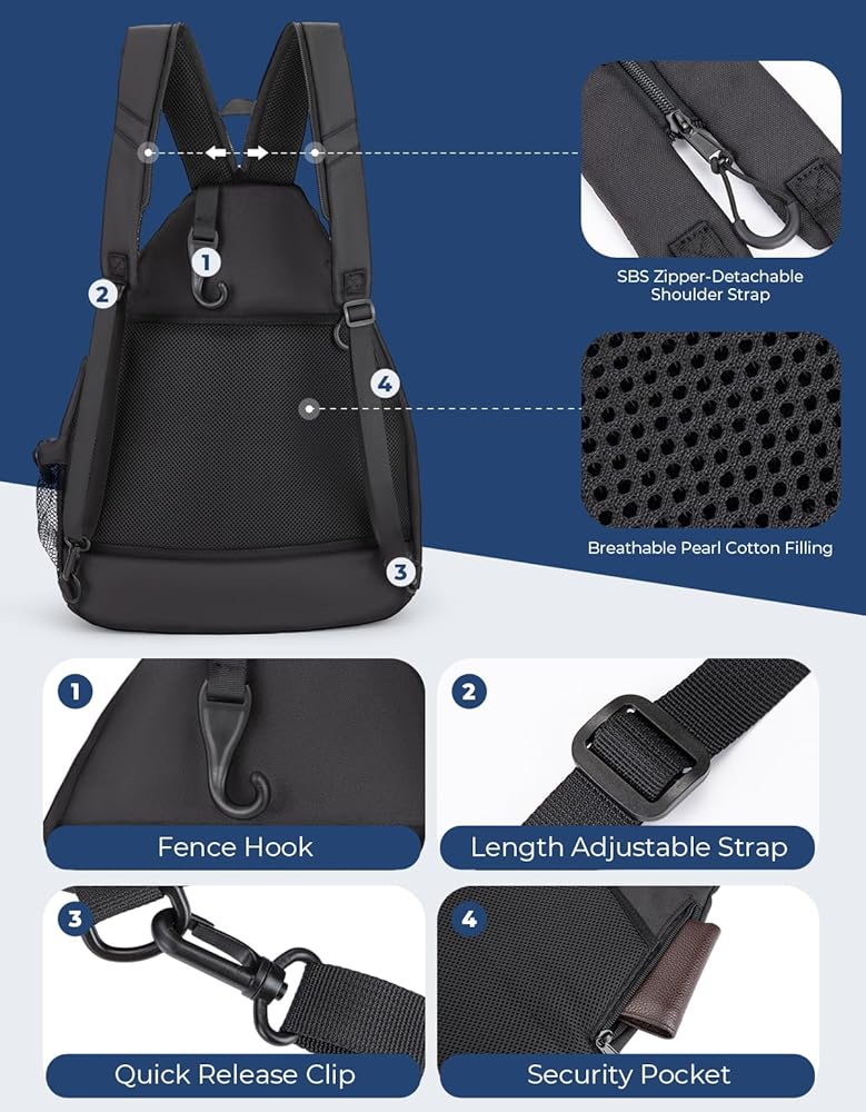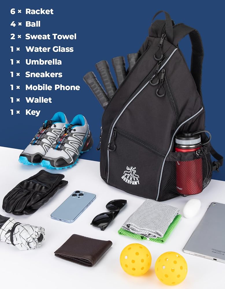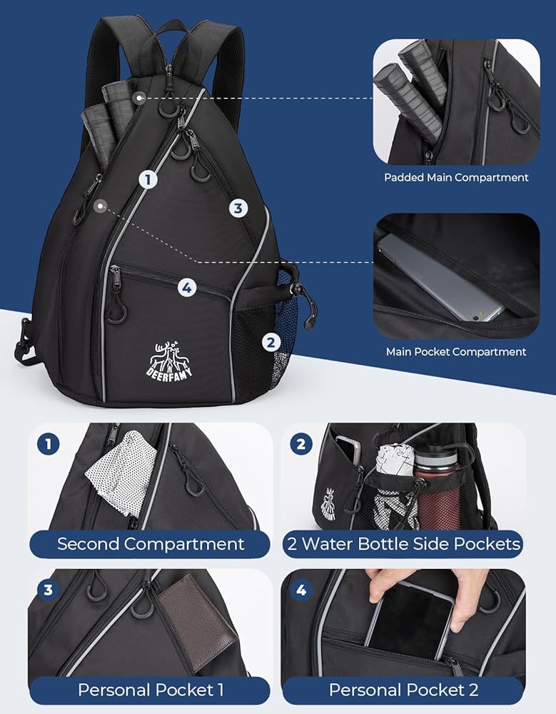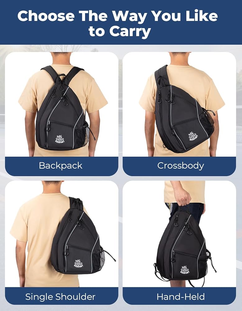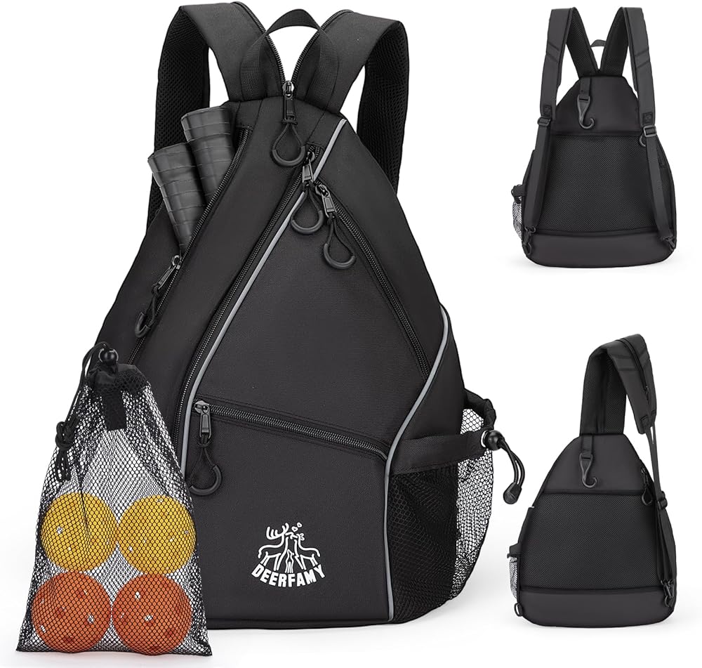 حقيبة كرة مخلل خفيفة الوزن من DEERFAMY، حقيبة / حقيبة ظهر ذات وجهين عبر الجسم للنساء والرجال، حقيبة حبال قابلة للتعديل مع سحاب SBS تناسب 6 مضارب و4 كرات، سوداء