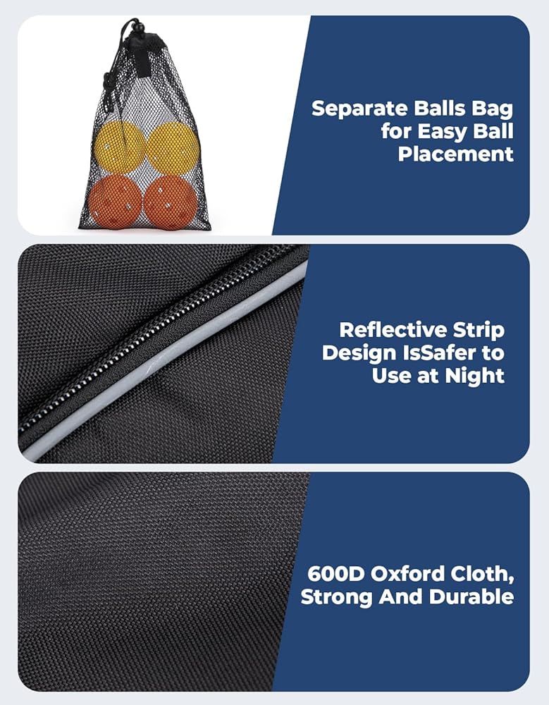 【سعة كبيرة وجيوب متعددة】احمل جميع ملحقات كرة البيسبول الخاصة بك في حقيبة واحدة! تتميز حقيبة كرة البيسبول هذه بـ 6 جيوب بسحاب وحامل زجاجة مياه خارجي، ويمكنها حمل ما يصل إلى 6 مجاديف كرة البيسبول وجميع معداتك الأخرى. تحتوي الحجرة الرئيسية على غطاء صغير في الأسفل لمنع الأشياء من السقوط. كما قمنا بتجهيز حقيبة كرات إضافية يمكنها حمل 4 كرات مخلل.