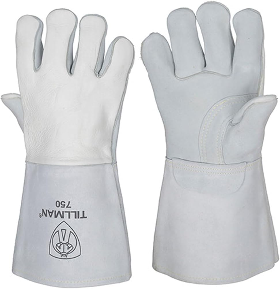 - Top grain pearl Cowhide palm, bourbon Cowhide split leather back