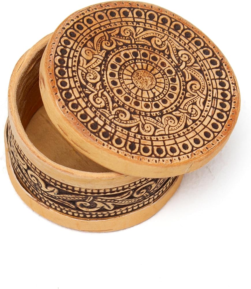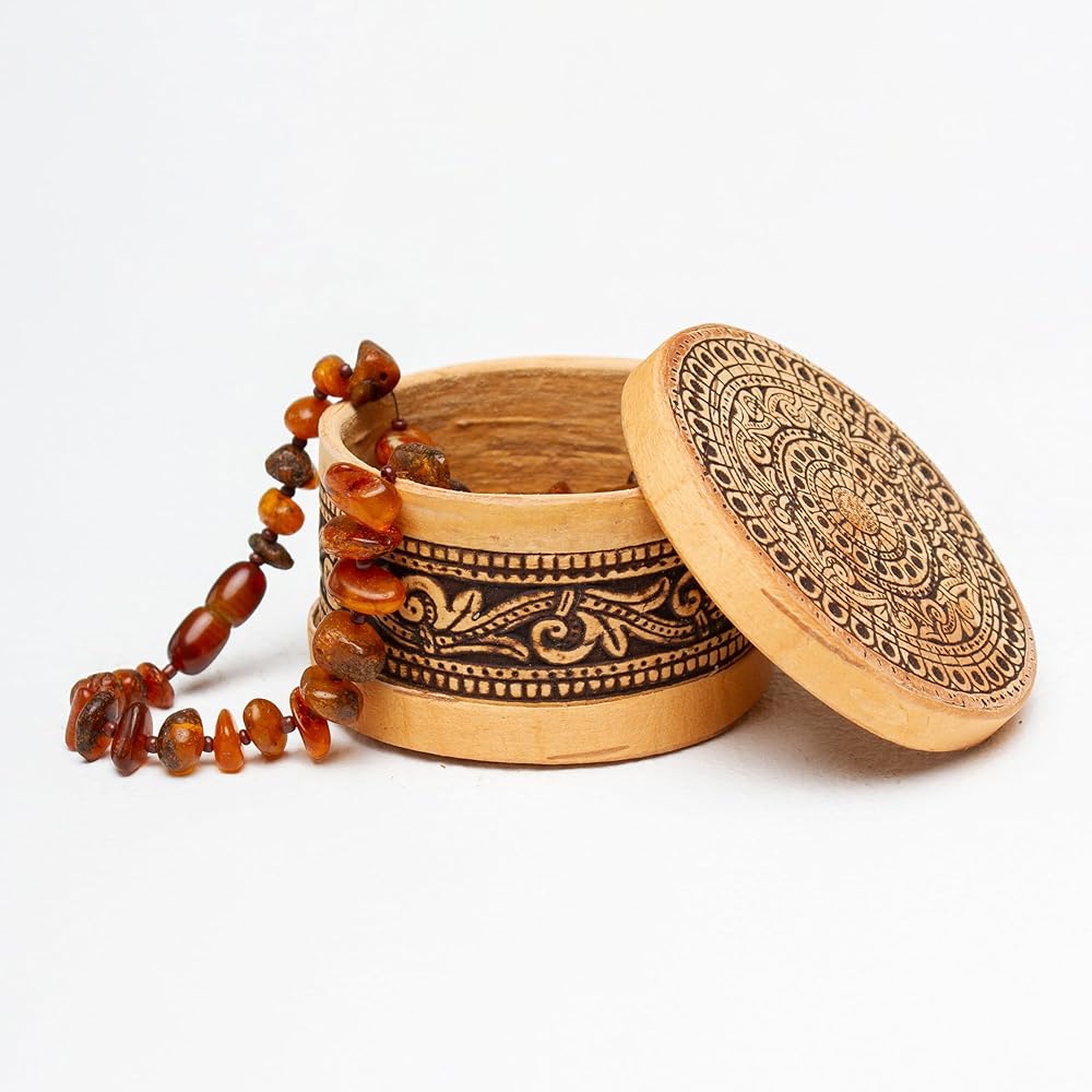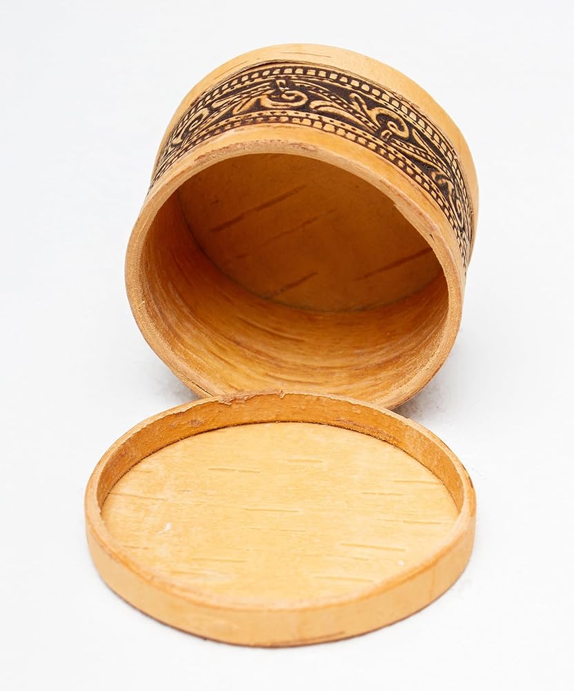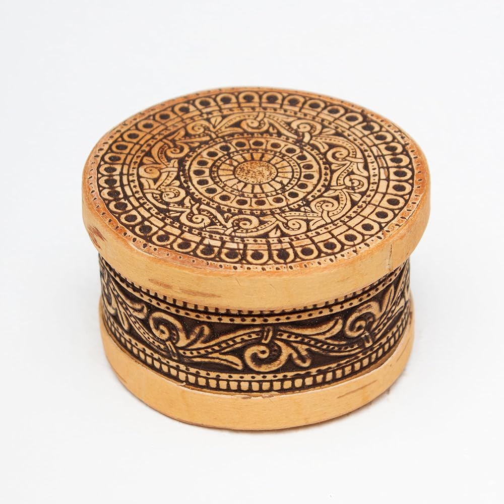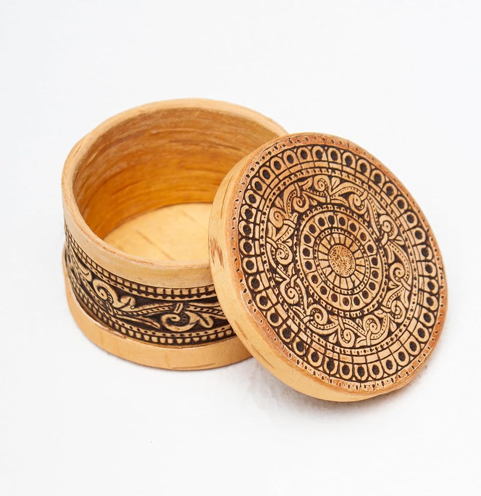 صندوق تخزين تذكاري صغير للمجوهرات المزخرفة، علب هدايا لحاء البتولا الخشبي الدائري