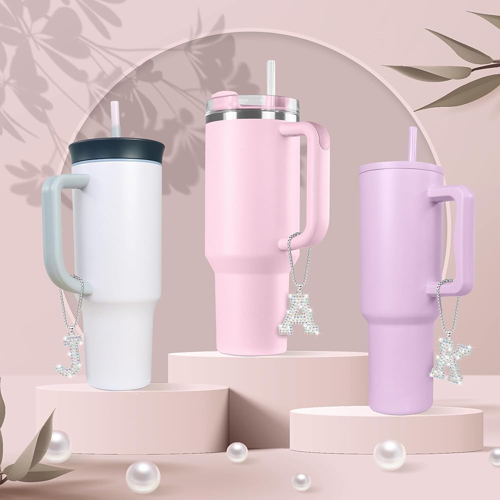 💎Bling Design:This initial charms comes with sparkling accessories. Featuring a pearl and diamond design style adorned with sparkling colored pearl rhinestones. Adding a stylish to your water bottles/tumblers with handle. 💎From now on, you will never get the wrong tumbler among the many tumbler.At the same time, make your tumbler more personalized.