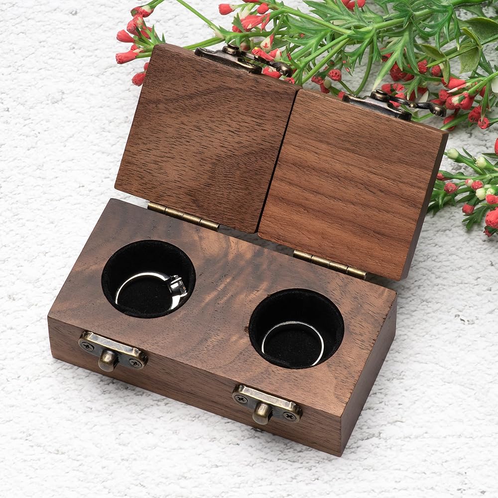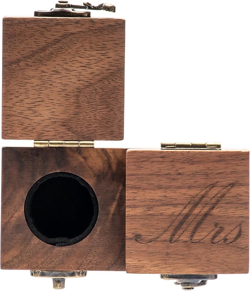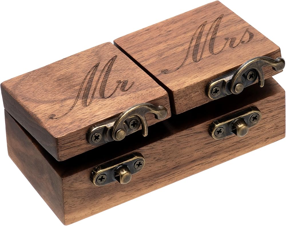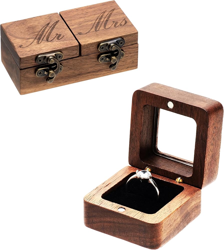 صندوق خاتم خشبي مكون من قطعتين لحفلات الزفاف (السيد والسيدة هيفي + ASquare Single أسود)