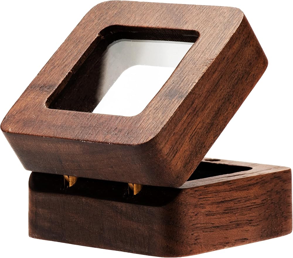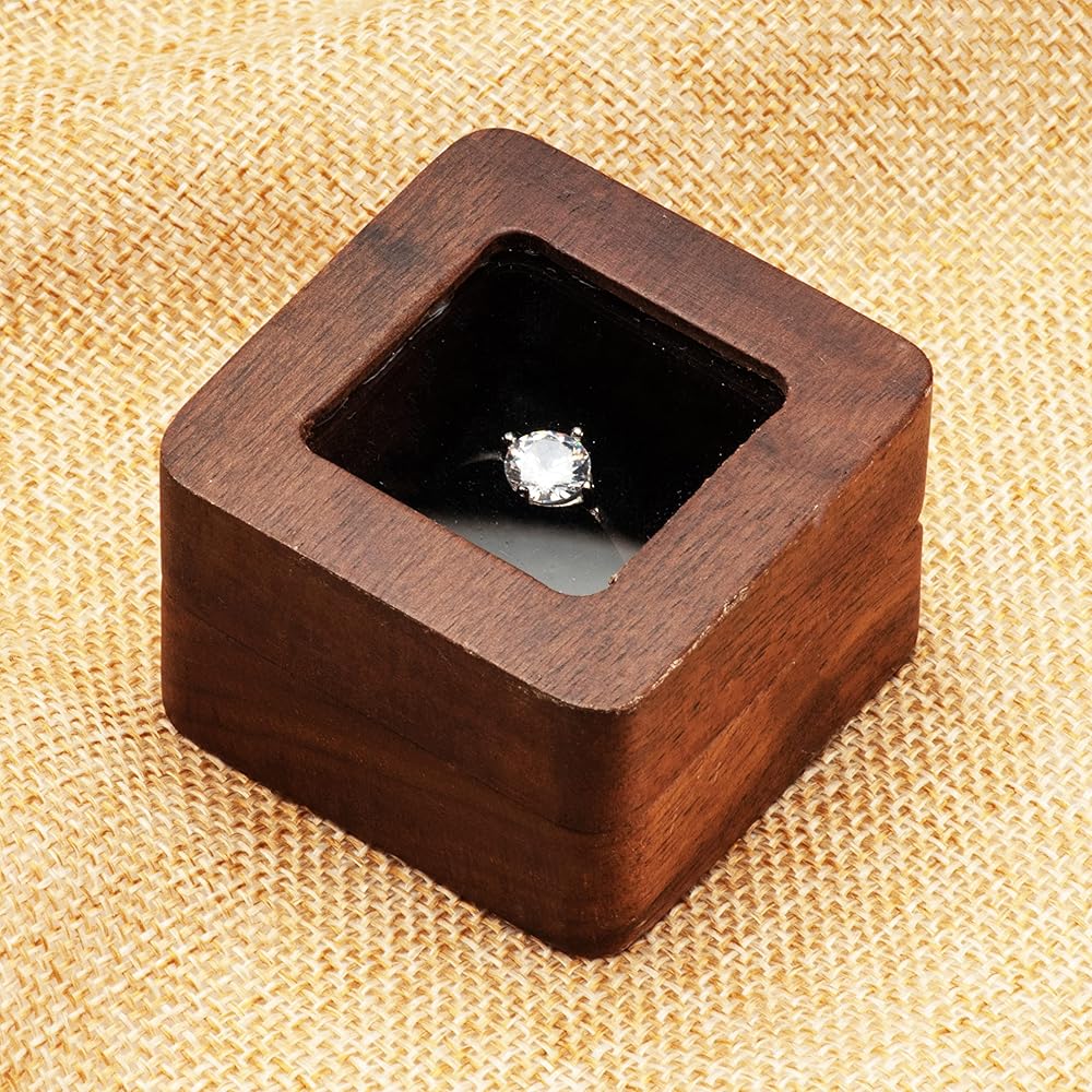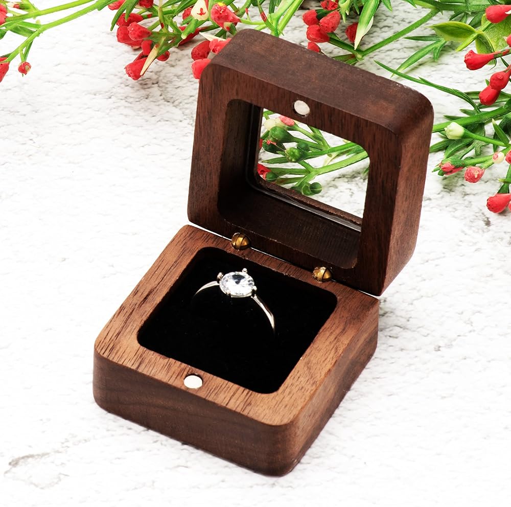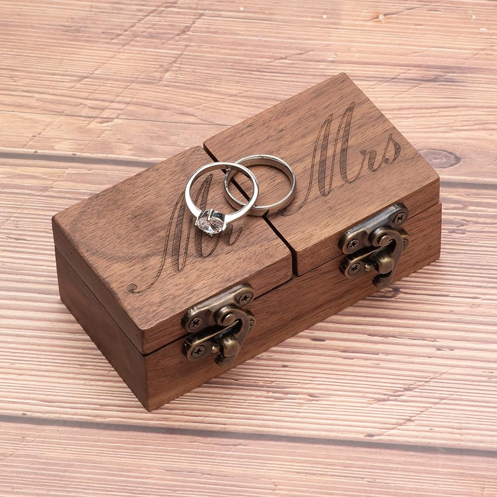 صندوق خاتم خشبي مكون من قطعتين لحفلات الزفاف (السيد والسيدة هيفي + ASquare Single أسود)