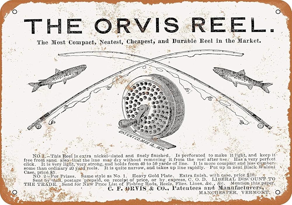 Keviewly 1876 Orvis بكرات الصيد علامة معدنية من القصدير مقاس 12 × 8 بوصات ديكور عتيق عتيق