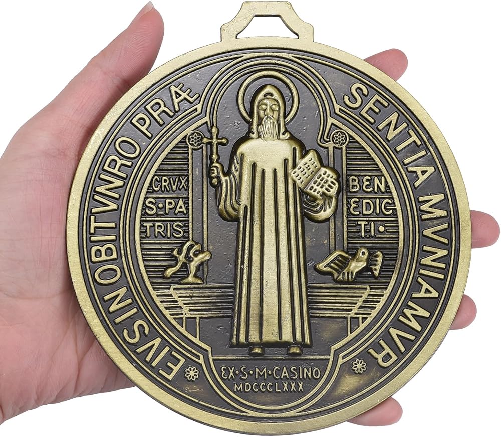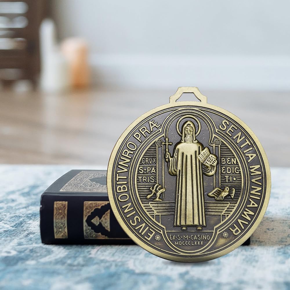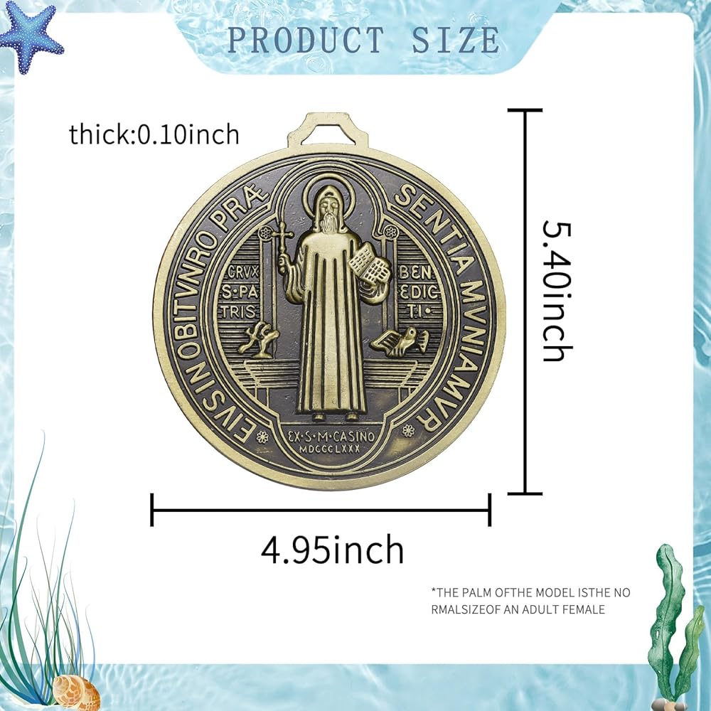 هذه الميدالية المقدسة للقديس بنديكت مصنوعة من سبائك الزنك عالية الجودة. صنعة متقنة، وحرفية رائعة، وميداليات ناعمة بدون نتوءات. الأبعاد تقريبًا 5.5 بوصة طول × 5 بوصة عرض × 0.24 بوصة سمك.