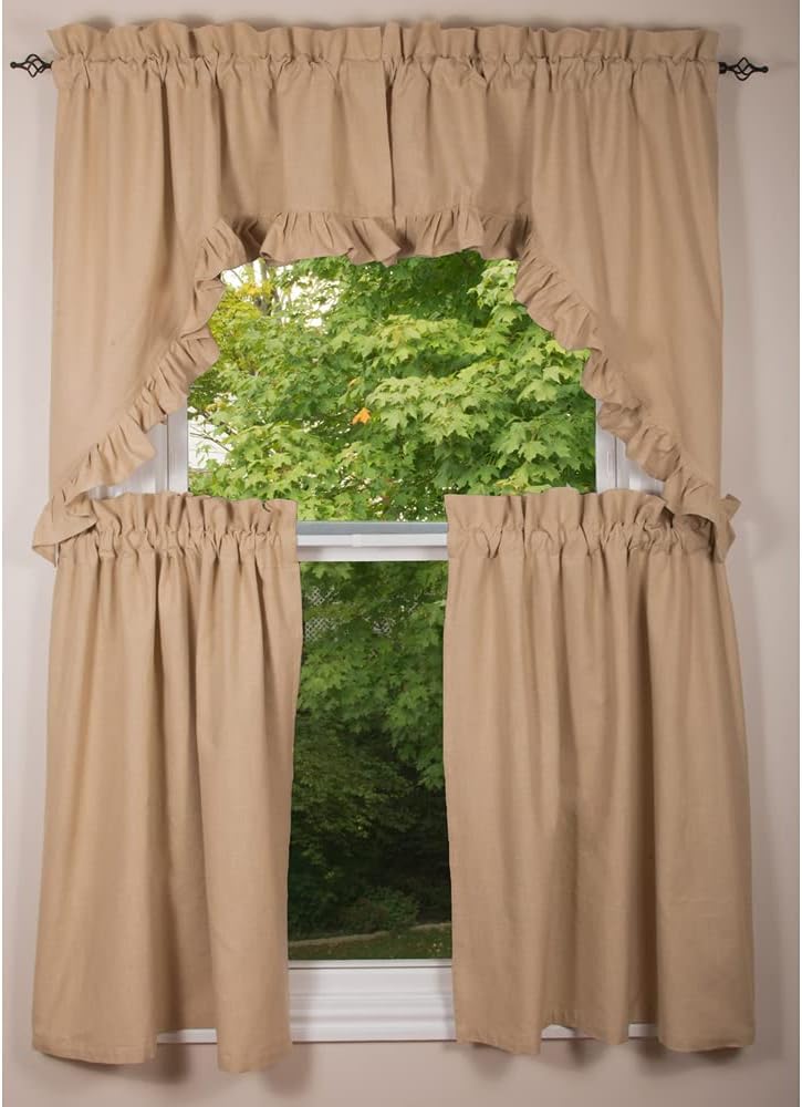 Home Collection by Raghu Meadowpark Swag . Our cream Meadowpark swag is made of cotton. This is a 72 Inch x 36 Inch (2 pcs) fully lined swag with a 2 Inch header and a 2.5 Inch rod pocket. We specialize in home decor of every style; primitive, country and upscale country. With hundreds of patterns and styles to choose from; country plaids, checks, floral and solids. Home collections by Raghu carries table top linens for every season. Our window treatments include drapery panels, prairie curtains, tiers and valances in various styles.