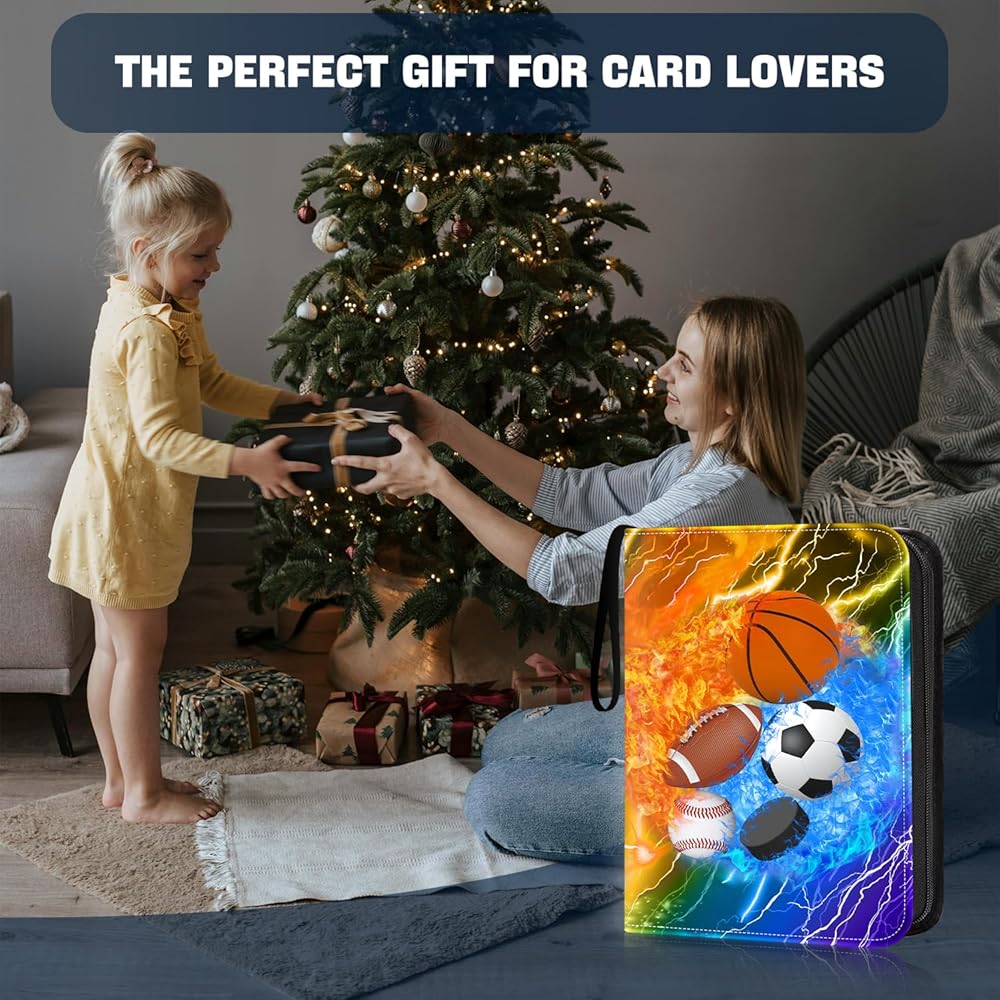 【The Ideal Gift for Baseball Card Collectors】 If you are unsure about gift choices for birthdays, Thanksgiving, Christmas, or any other occasion, especially for boys and girls, this baseball card binder with its vibrant, colorful, and fashionable baseball pattern design is a great choice and will make any card collector happy. 【Large Capacity -900 Pockets】 This sports card binder has 9 slots on each side, a double-sided design, a total of 50 pages, and can accommodate up to 900 baseball cards. These sheets are made of transparent, safe, and acid-free materials that prevent card fading and discoloration, and provide waterproof protection. A clear display screen is perfect for storing various collectible cards. 【Protect Your Card】 This trading card holder with a sleeve is made of PU material, which is semi-waterproof, oil-resistant, easy to clean, and particularly durable. The transparent card pocket design allows you to easily browse and display cards without the need to remove them while preventing fading. The high-quality zipper binder ensures that the inner pages or cards do not fall off, providing comprehensive protection for your collection. 【Thoughtful Wristband Design】 The card collection binder features a top-loading design, making it easy to insert and remove the card. Extra wristbands provide children with a better way to carry their card collection binders to school, friend's homes, or travel. 【Widely Used】 This collector card binder is not only suitable for baseball cards but also for all standard-size collectible trading cards, such as basketball cards, football cards, soccer cards, hockey cards, sports cards, MTG cards, photo cards, Yu Gi Oh Cards, and even credit cards. (Inner bag size: 3.6 * 2.8 inches).