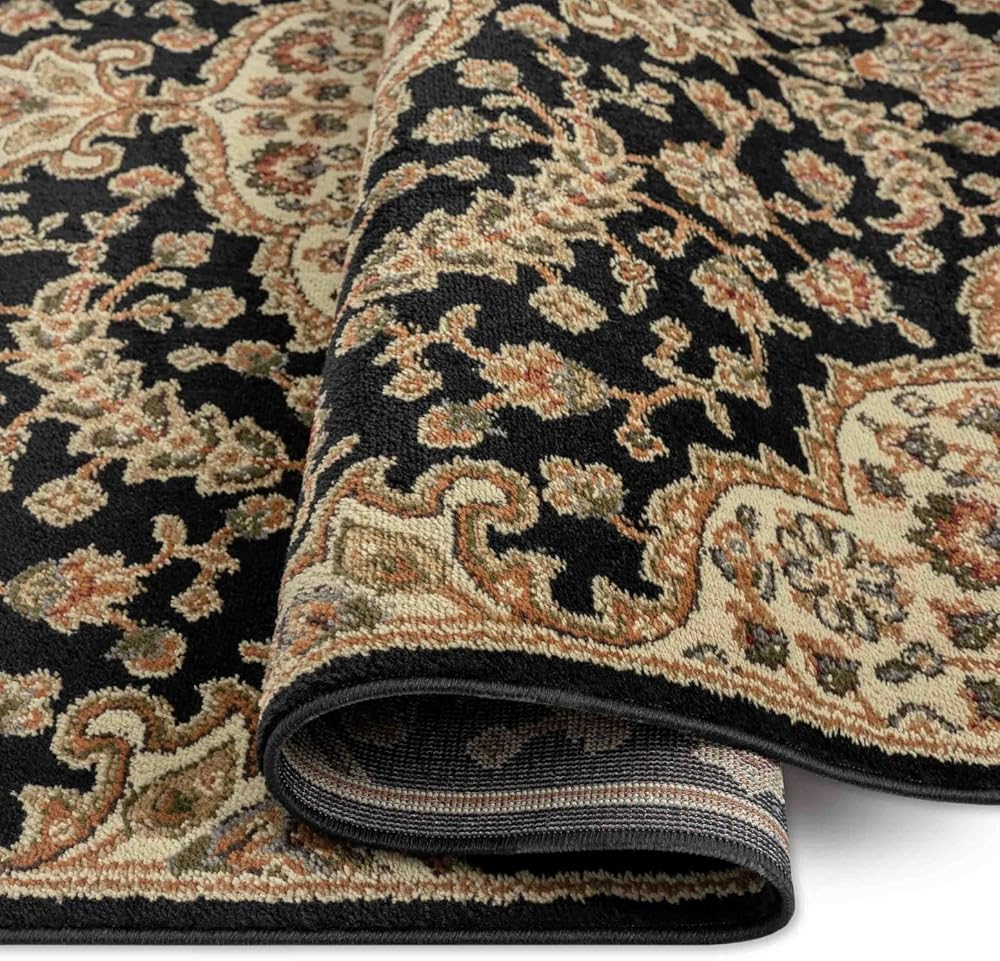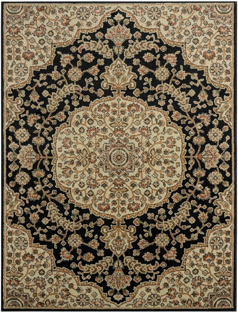 Update your space with the classic Royalty Medallion area rug from Home Dynamix. With a traditional medallion motif in black and ivory, this area rug offers an upscale, stylish look that complements both traditional and transitional decors. Super soft to the touch, the durable, power-loomed, heat-set polypropylene yarns are fade-resistant, stain-resistant, and easy to clean, making this rug ideal for high traffic areas. A jute backing helps your rug keep its shape and beauty over time.