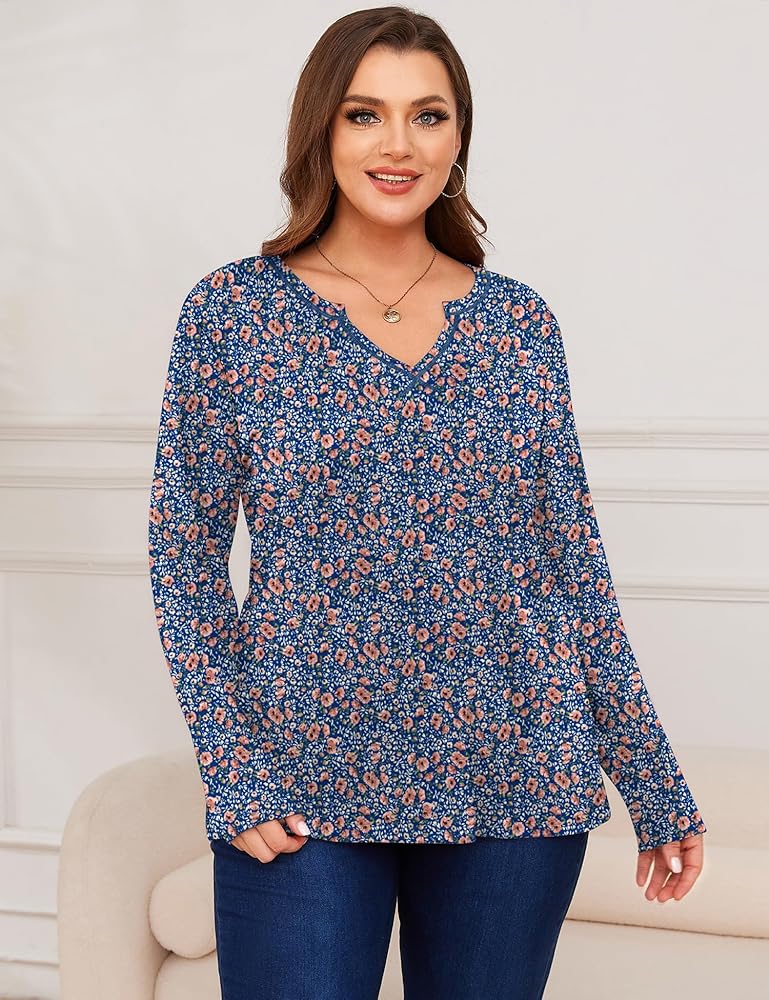 قمصان طويلة الأكمام للنساء ذوات الأجسام المنحنية--هذا القميص الكاجوال جيد التهوية ومريح، مما يجعله اختيارًا رائعًا للاسترخاء أو القيام بالأعمال اليومية. تضيف الرقبة على شكل حرف V والخياطة المرئية لمسة من الأناقة إلى القميص البسيط، مما يجعله لطيفًا اختيار لقميص العمل.