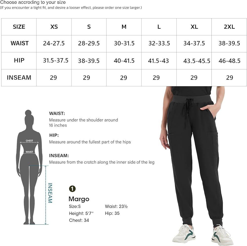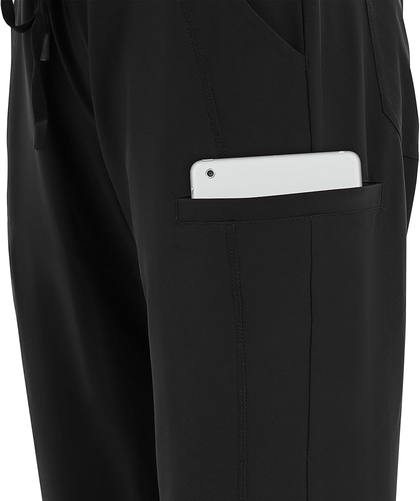 SLIM FIT- Our stylish women's scrub pants feature durable four-way stretch fabric and reinforced seams for lasting quality. Soft milk silk spliced on the leg cuffs and on the waistband with functional premium materials joggers, enjoy comfort and elegance all day long. Regular inseam 29 inches.