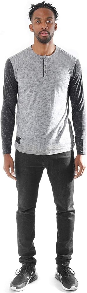 التصميم: ملابس يومية بسيطة وأنيقة دون عناء من خلال تنسيق تي شيرت بيسبول خفيف الوزن بأكمام 3/4 مع الجينز أو تشينو، مما يضيف الراحة من خلال قميص Henley ذو الأكمام المتباينة