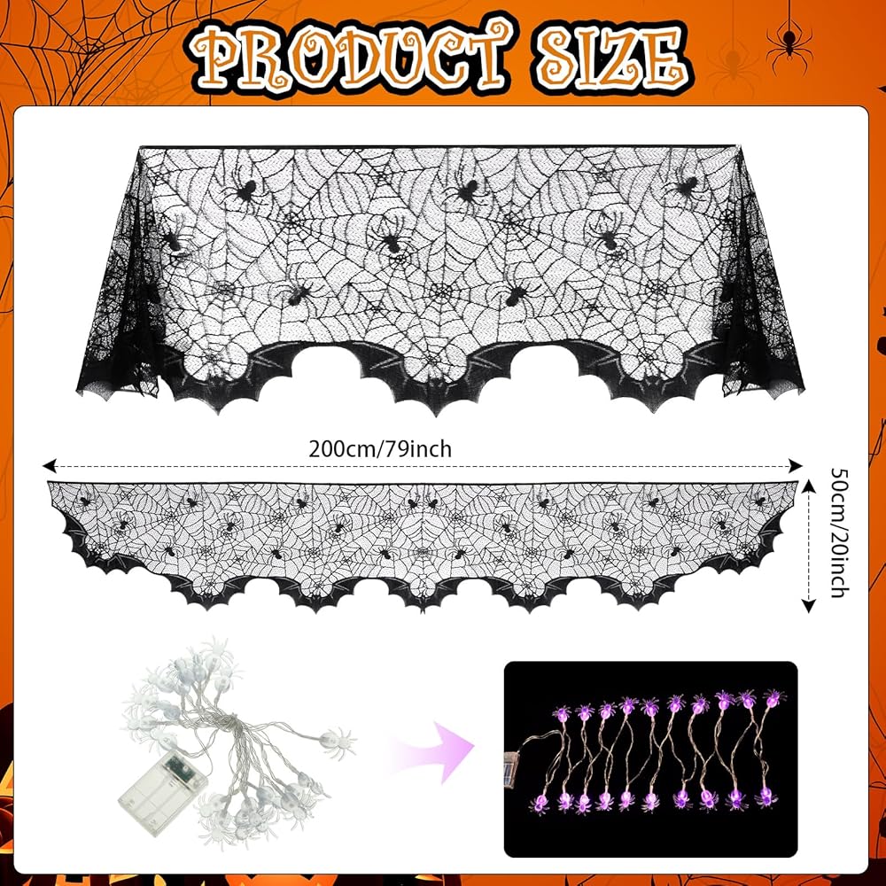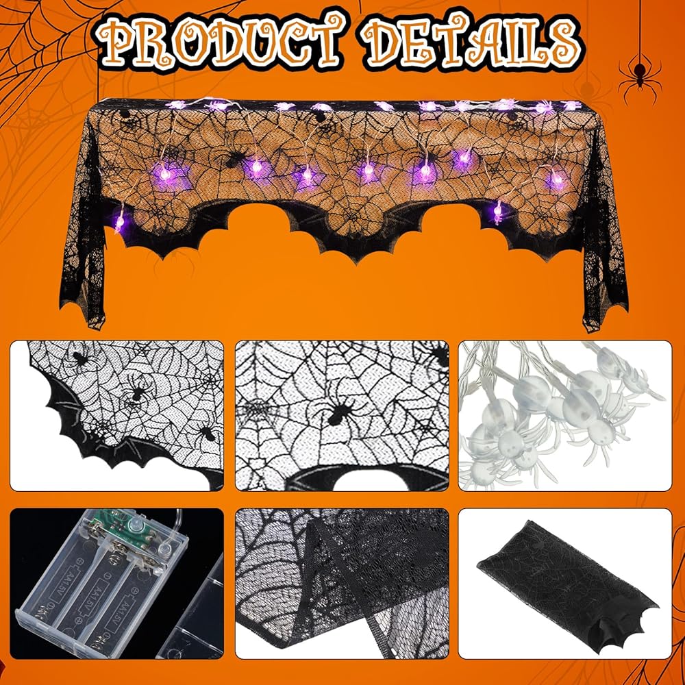 This Halloween tablecloth is designed with clear cobwebs and spider patterns, cute and creative, light and beautiful. So they are appropriate for decorating fireplaces, cabinets, gates, and more.