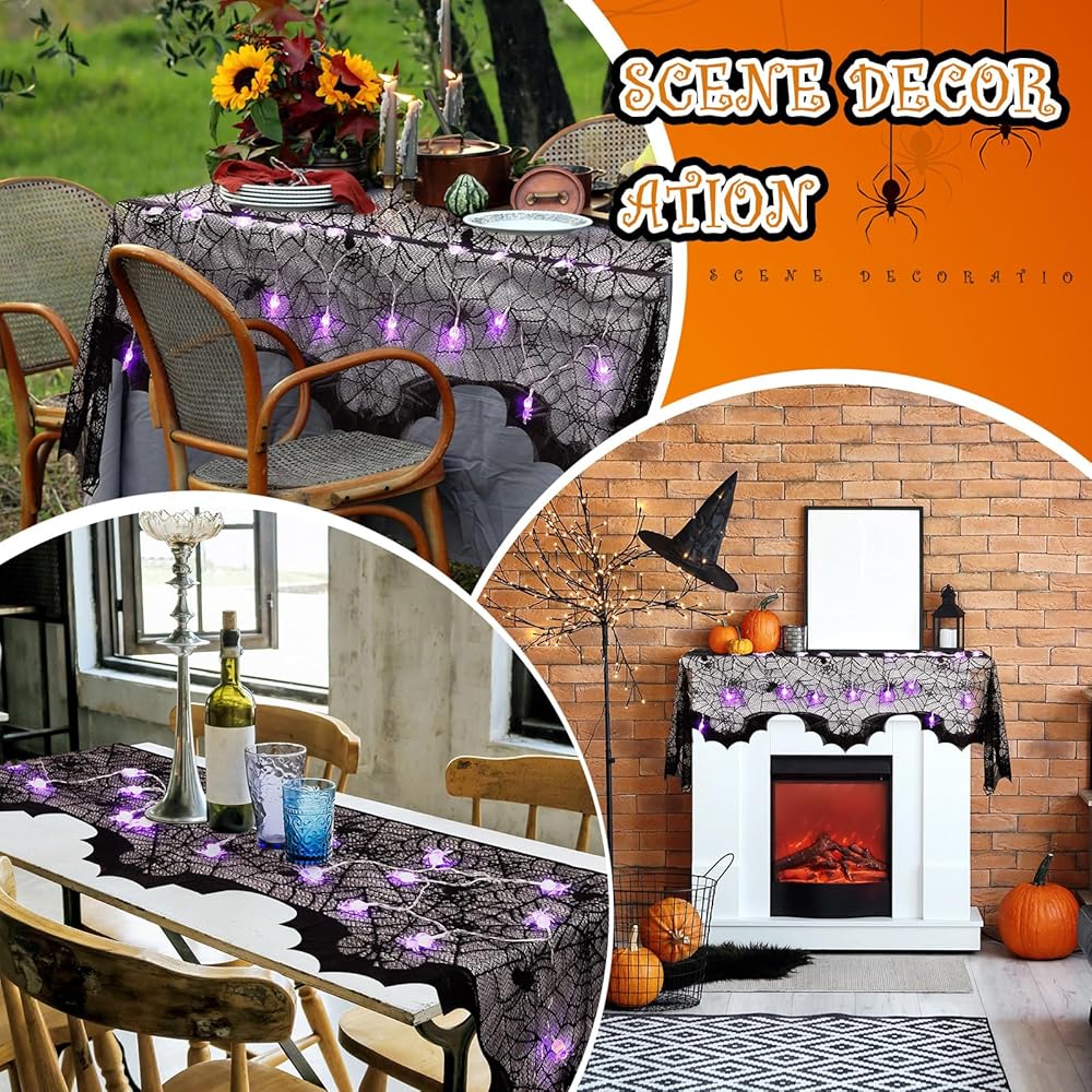 Black lace table runner and hanging Halloween lights are light and reliable, practical and scary, easy to build creepy atmosphere, so it is thoughtful to send to your family and friends, making ample Halloween atmosphere for them.