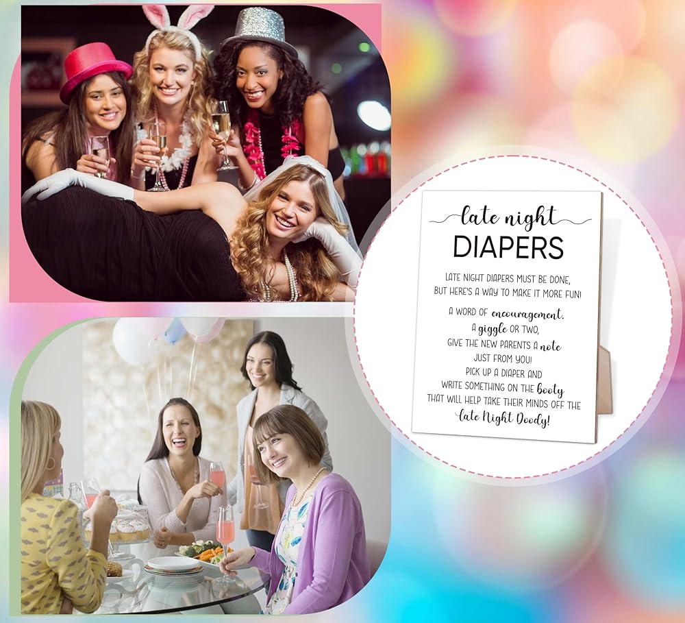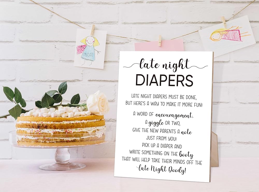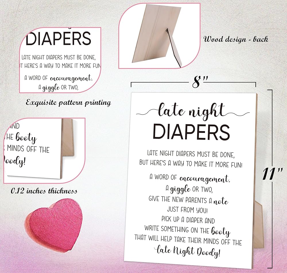 ألعاب استحمام الطفل ذات الطراز البسيط، علامة حفاضات في وقت متأخر من الليل لاستحمام الطفل، دش الزفاف وحفلة الكشف عن الجنس، 8 × 11 علامة خشبية مع حامل، ألعاب الكشف عن الجنس، هدايا استحمام الطفل، O13