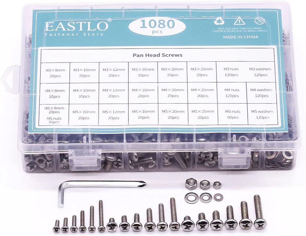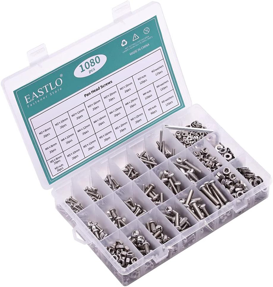 EASTLO 1080 قطعة M3 M4 M5 عموم رئيس آلة مسامير مجموعة أدوات فيليبس محرك تشكيلة الفولاذ المقاوم للصدأ 304 (18-8) موضوع كامل