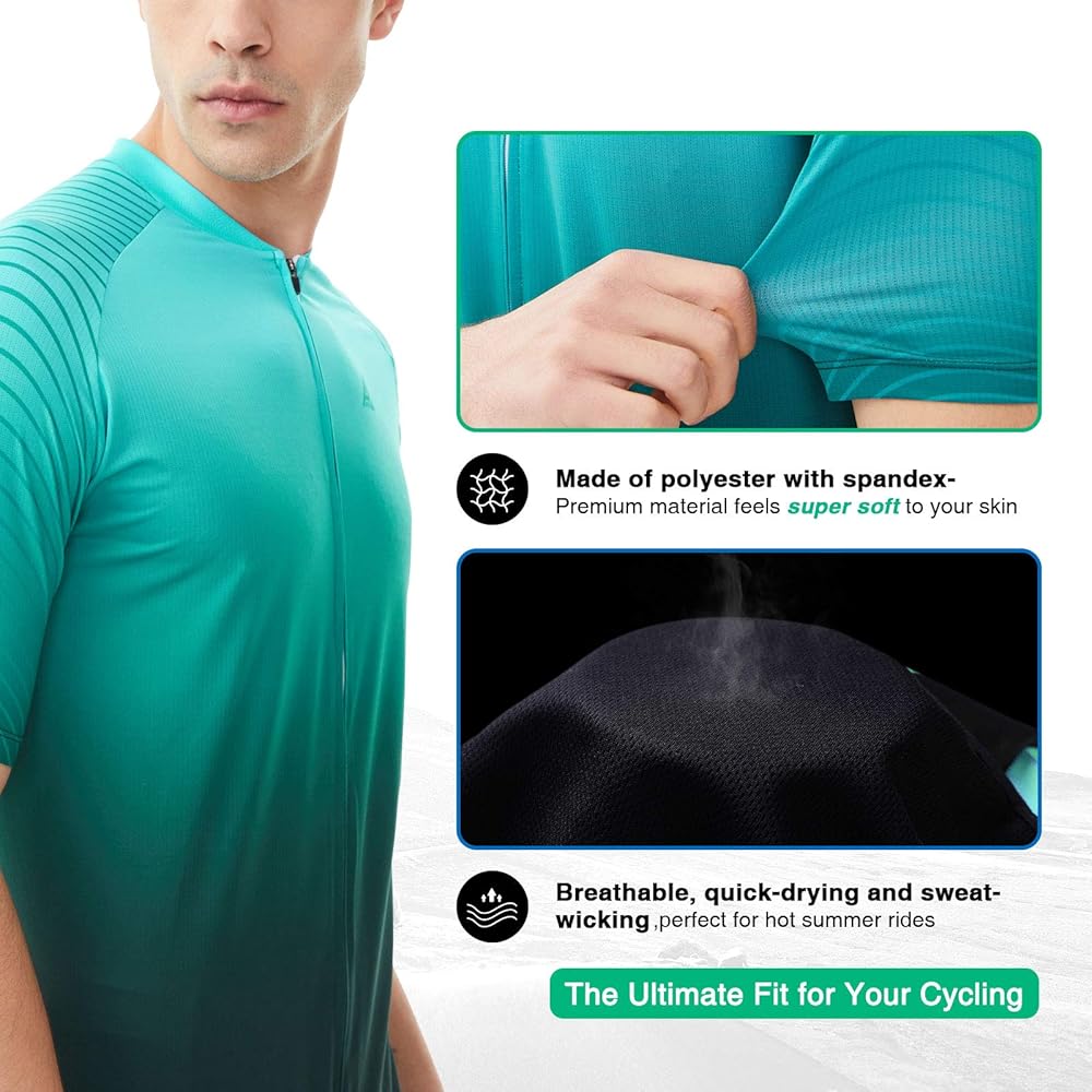🚲 𝐋𝐄𝐓 𝐘𝐎𝐔𝐑 𝐒𝐊𝐈𝐍 𝐁𝐑𝐄𝐀𝐓𝐇𝐄: مصنوع من بوليستر فائق التهوية وممتص للرطوبة مع نسيج بولي سباندكس، يوفر لك قميص ركوب الدراجات ذو الأكمام القصيرة راحة فائقة بالإضافة إلى حرية حركة واسعة لمرافقتك ركوب الدراجة بشكل مريح. تم تصميم قميص الدراجة الترابية ليتناسب بشكل مريح مع محيط جسمك أثناء الركوب دون أن يكون ضيقًا أو خانقًا. لا غنى عنه لركوب الخيل في الصيف الحار!