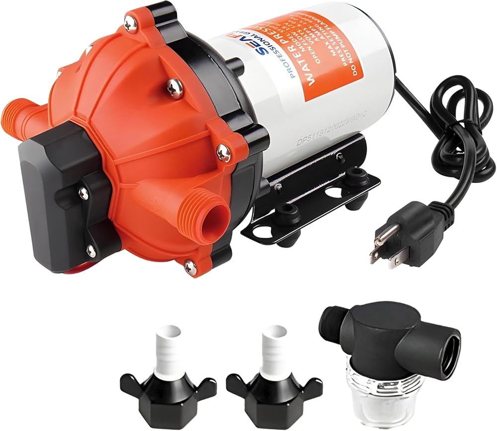 مضخة ضغط المياه الصناعية من سلسلة سيفلو 55 مع قابس طاقة لمنفذ الحائط - 115 فولت تيار متردد، 5.0 جالون في الدقيقة، 60 رطل لكل بوصة مربعة | تحضير ذاتي، للخدمة الشاقة، تشغيل هادئ | مثالية للاستخدام في المركبات الترفيهية والقوارب وخارج الشبكة والاستخدام الصنا in Kuwait