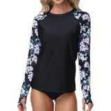 • الحماية من الشمس: قمصان السباحة النسائية بأكمام طويلة وقماش بعامل حماية من أشعة الشمس 50+ تحمي بشرتك عن طريق حجب الأشعة فوق البنفسجية الضارة وتوفر تأثيرًا مساميًا وباردًا. قميص السباحة بأكمام راجلان وطباعة ملونة.
