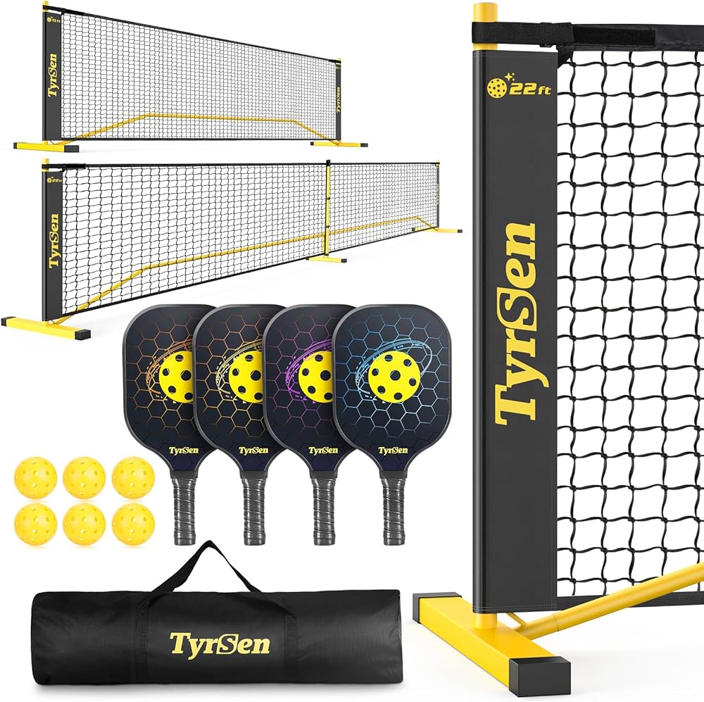𝟏𝟏𝐅𝐓 𝐨𝐫 𝟐𝟐𝐅𝐓 - مجموعة كرة المخلل هذه للممر تتضمن 2 قويين شبكات ripstop PE، حجم نصف الملعب 11FT مثالي للتمرين الفردي والألعاب لشخصين في مساحة محدودة، وحجم 22FT يلبي لوائح كرة البيسبول الرسمية للمعيار 4 ألعاب الناس أو الممارسات. احصل على مقاسين من الشبكة مع مجموعة واحدة فقط وتخلص من محدودية المساحة!