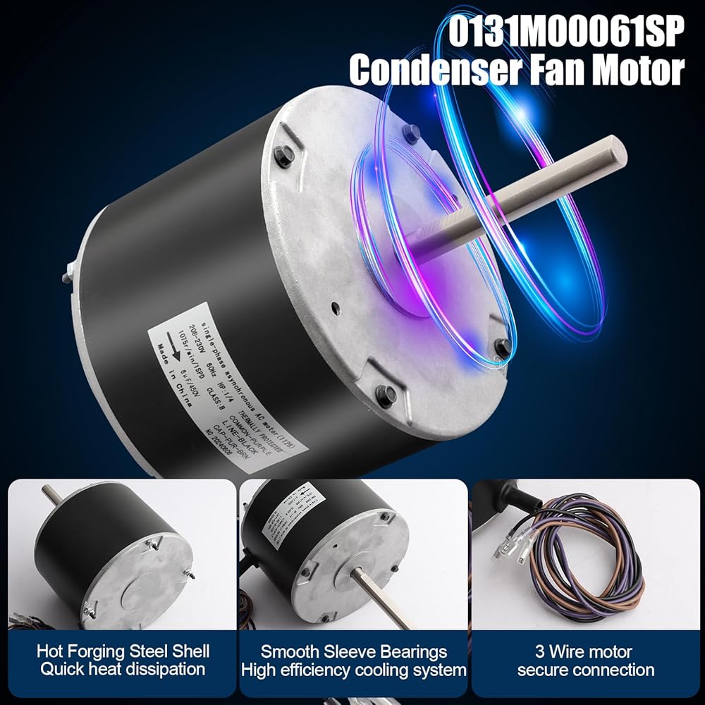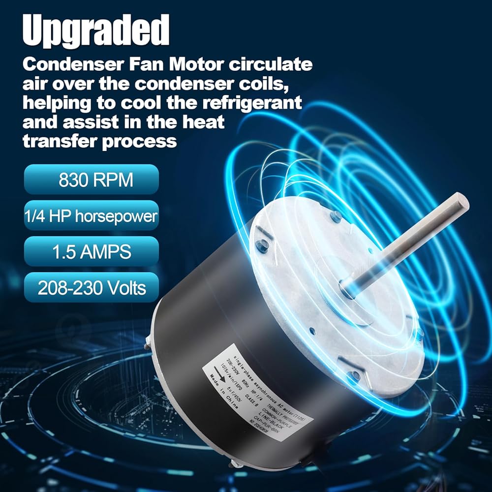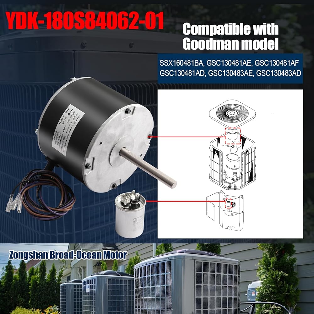 • استخدام DIY: محرك مروحة مكثف 1/4 حصان مصنوع من مواد فولاذية ساخنة، وهو جزء لا غنى عنه من وحدة المضخة الحرارية لتكييف الهواء Goodman، مصمم للتركيب البسيط والصيانة السهلة، لا حاجة لضبط الأسلاك أو الموصلات؛ تم توفير أموال كبيرة عن طريق DIY وليس خدمة التدفئة والتهوية وتكييف الهواء (HVAC).