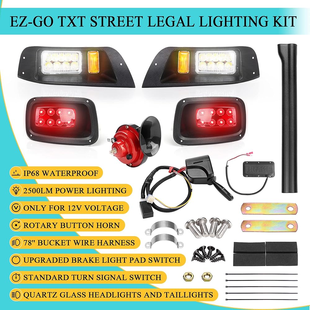 تأتي مجموعة الإضاءة مع أداة تركيب وتعليمات، يرجى الاتصال بنا للحصول على فيديو التثبيت إذا لزم الأمر (تأكد من أن عربة الجولف الخاصة بك 12 فولت حتى تعمل بشكل صحيح).