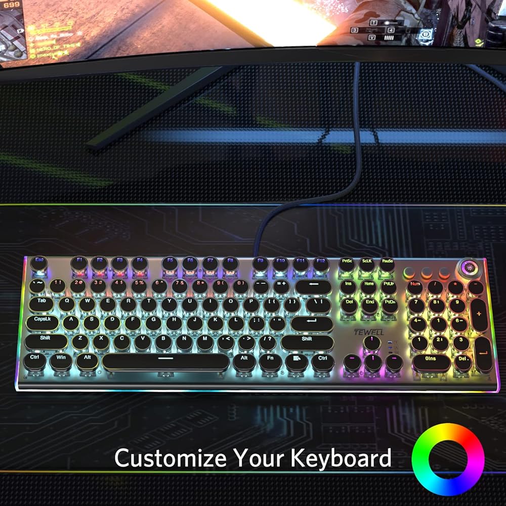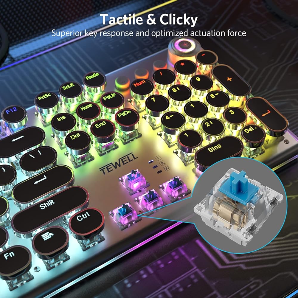 مفاتيح زرقاء عالية الأداء: المفاتيح الميكانيكية مع تشغيل دقيق وصوت نقر مسموع وردود فعل عن طريق اللمس ومتانة مدى الحياة تصل إلى 50 مليون ضغطة مفاتيح، تمنحك شعورًا مريحًا في الكتابة