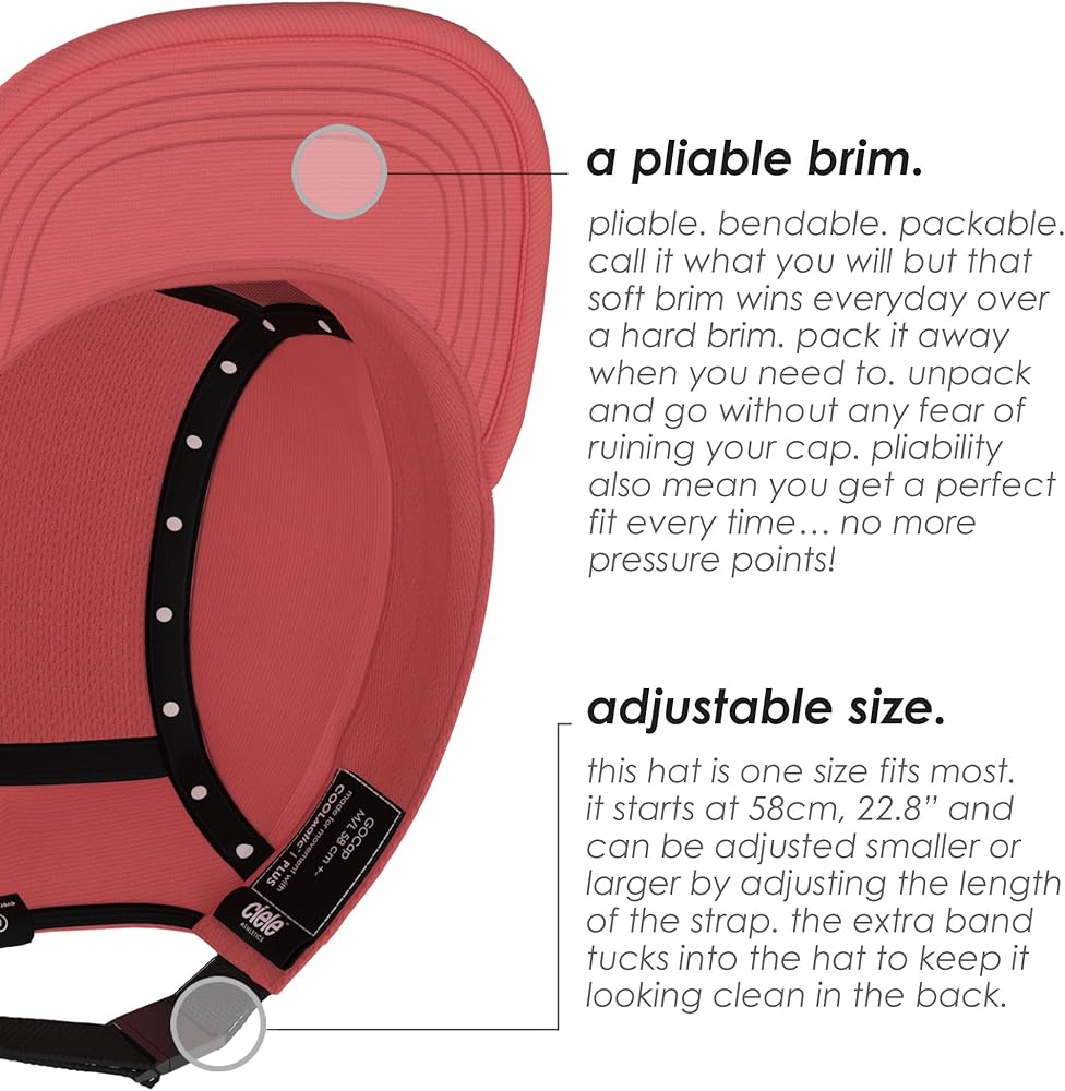 the original. the industry standard soft brim men and womens running hat. built lightweight, reflective, machine washable, packable, topped off with ultra breathable COOLmatic mesh and backed by ciele's Million Miles Guarantee.