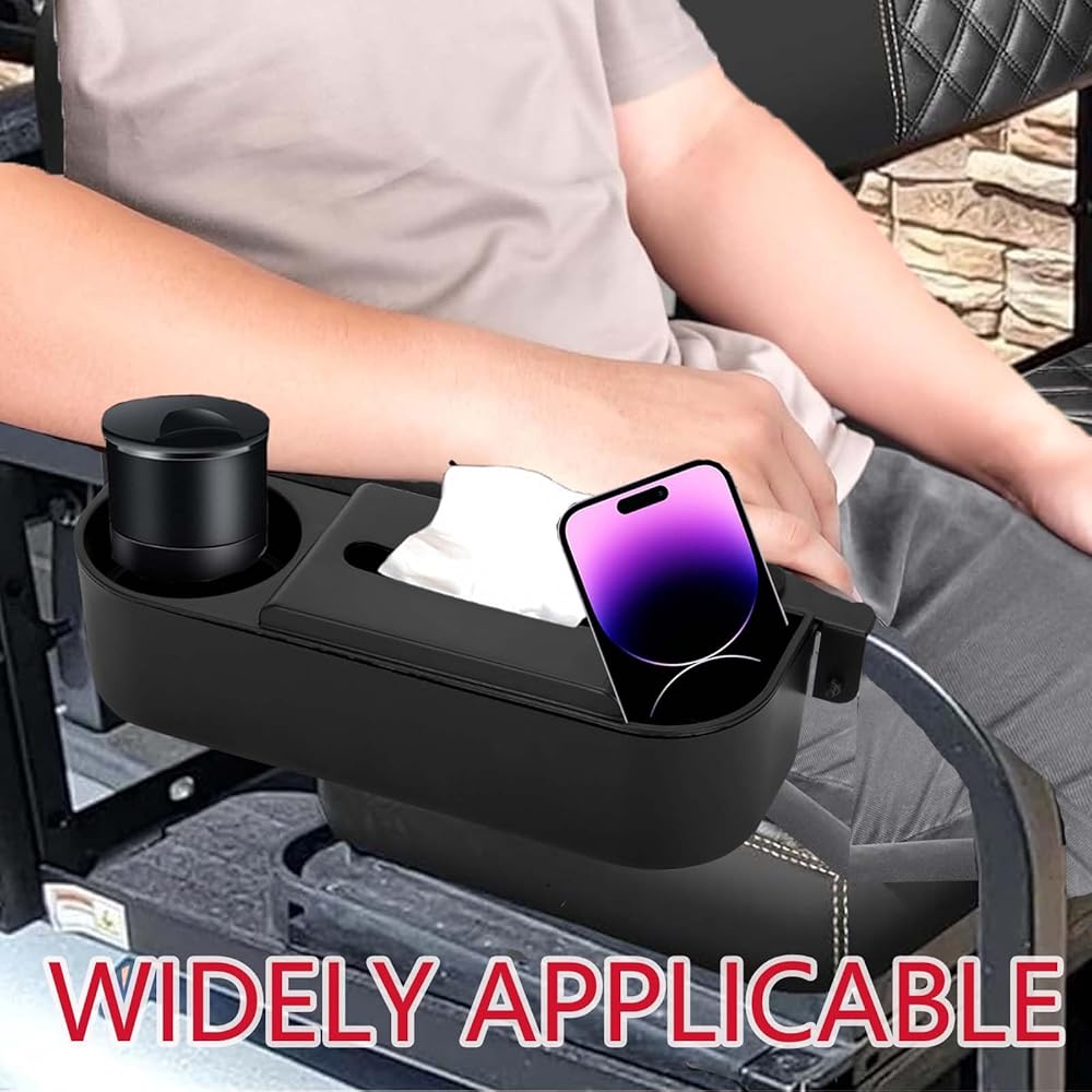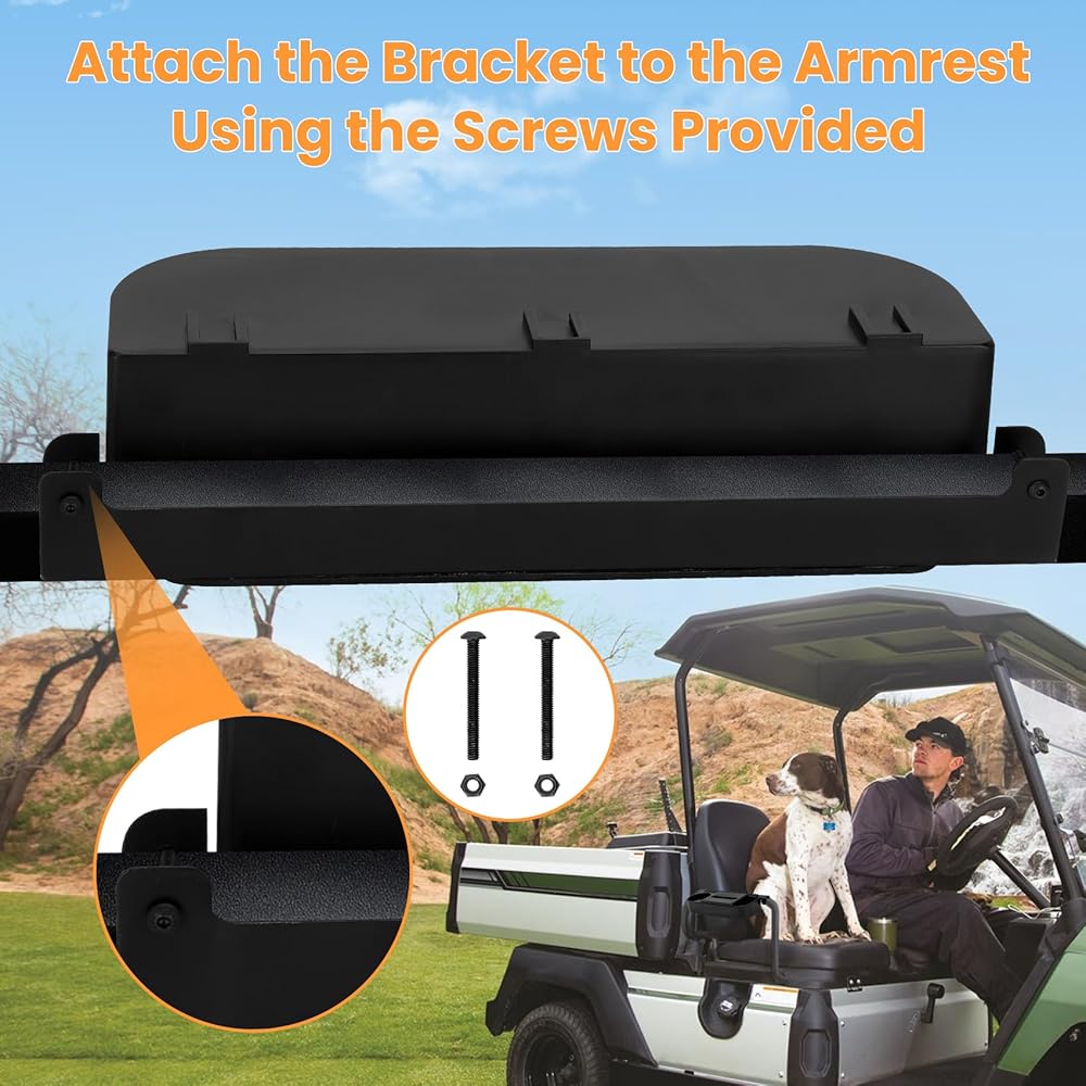 مسند ذراع عربة الجولف مع حامل أكواب، لا يتطلب الحفر، يناسب Ezgo/Club Car/Yamaha ومعظم عربات الجولف مع حامل الهاتف الخلوي وحامل المناشف الورقية، يناسب إطار أنبوب مربع 1 بوصة (أسود)