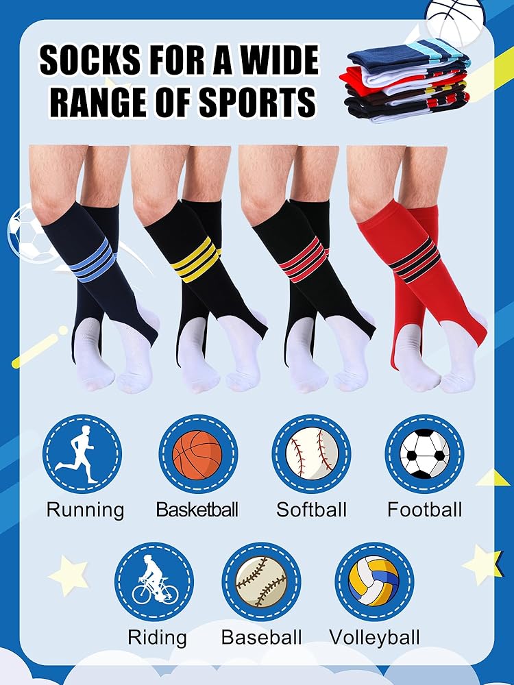 Wide Application: these baseball stirrups set are suitable for wearing and using while playing sports, basketball soccer volleyball softball sporty stirrup socks make your sports more comfortable, whether it's a high stakes game or other sports activities, it's your ideal choice; You can also match your clothes in daily to make your dressing more interesting and outstanding