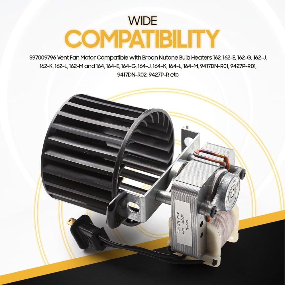 أداء قوي: مجموعة منفاخ محرك مروحة الحمام S97009796 هي الحل الأمثل لإحياء سخان السقف Broan Nutone Bulb وإعادة الهواء النقي إلى حمامك