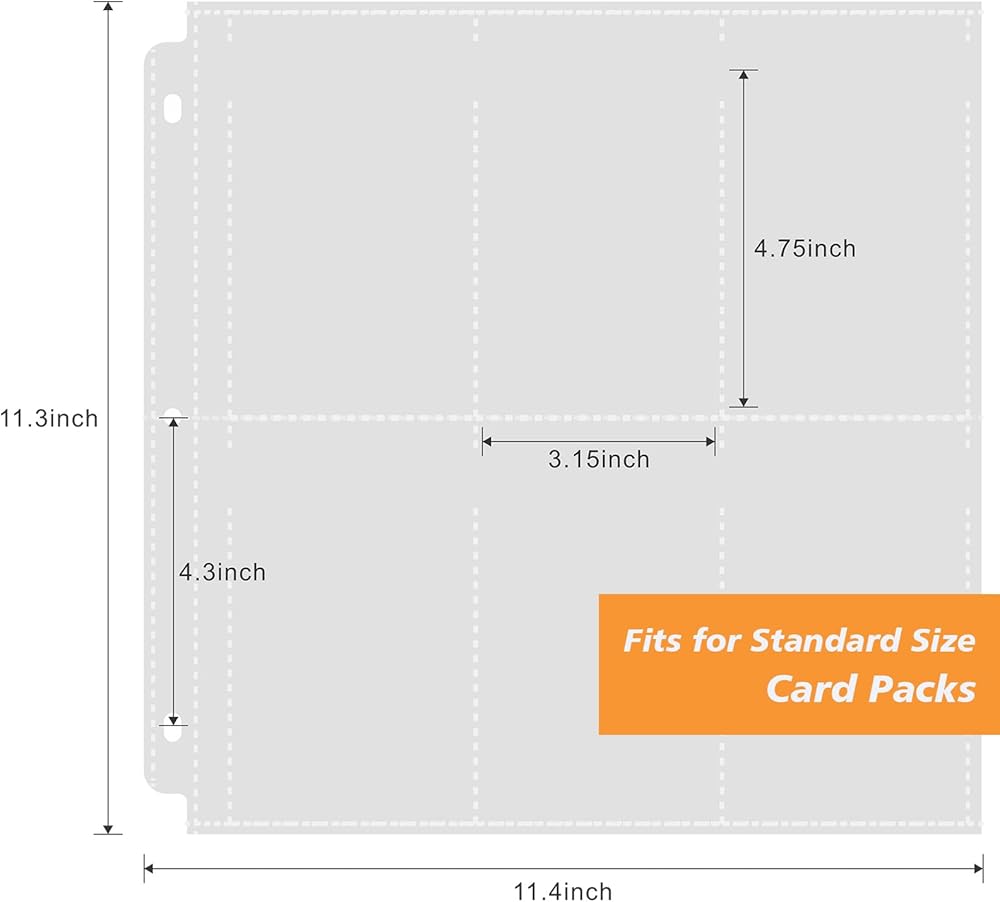 حافظة معززة، صفحة حماية مكونة من 6 جيوب متوافقة مع 3 حلقات، تناسب الحجم القياسي للرياضات MTG TCG Booster Packs Display Storage