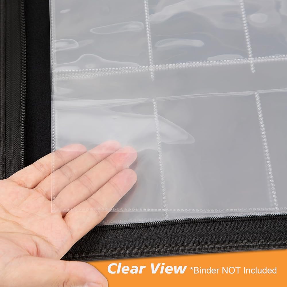 • 6 صفحات جيوب - عبوتان إجمالي 20 قطعة من الأكمام، مناسبة لحافظة بطاقات التداول القياسية المكونة من 3 حلقات وحزم بطاقات معززة محكمة الغلق MTG TCG.