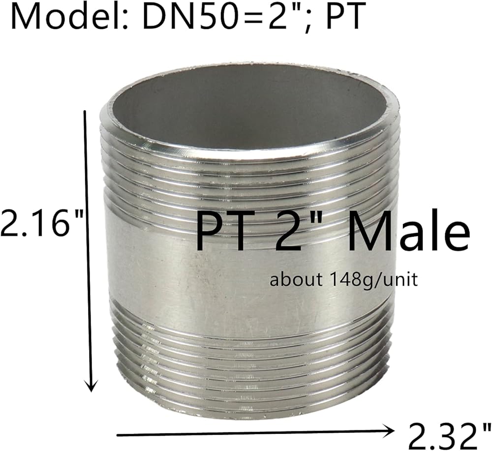 • Package includ: 1pcs stainless steel PT 2" Male Threaded Pipe Fittings