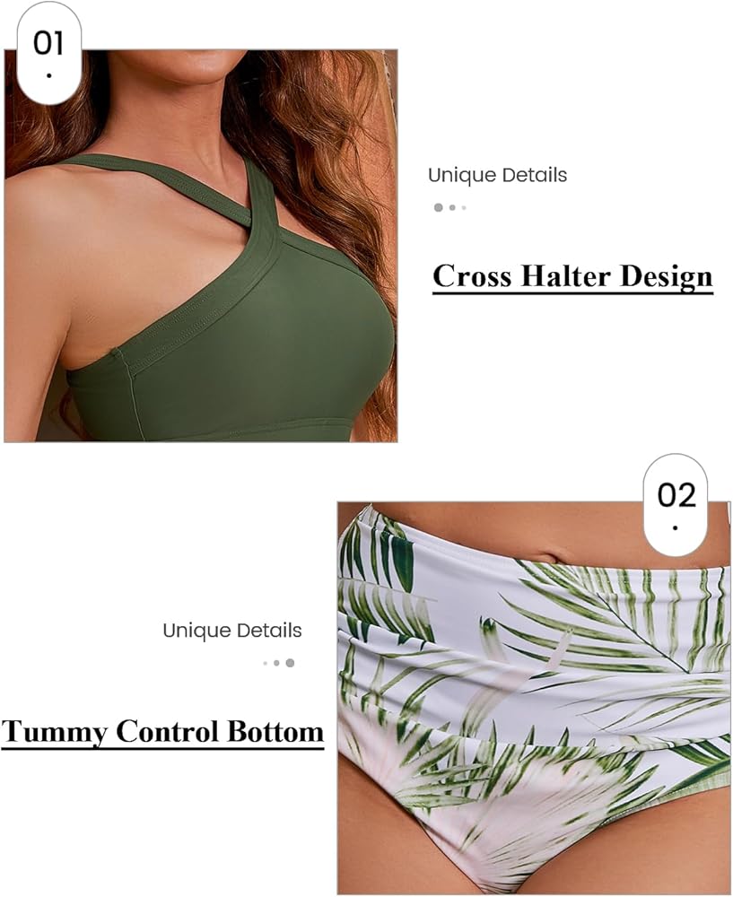 طقم بيكيني وسادة حمالة صدر قابلة للإزالة + أحزمة كتف قابلة للتعديل يمكن تعديلها بشكل أفضل حسب الطول المناسب، مما يجعل ملابسك أكثر ملاءمة وراحة.