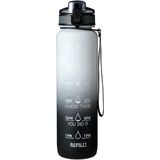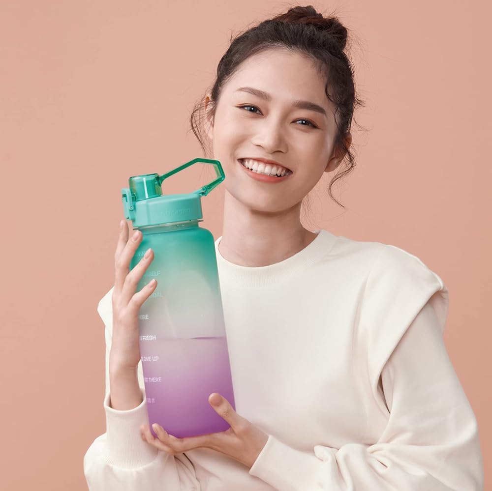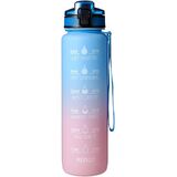Stay hydrated all day long with the MINISO Gradient Water Bottle! Made of food-grade tritan material, this BPA-free and non-toxic water bottle is not only safe for daily use but also durable and long-lasting. Its leakproof design with a silicone sealing ring and safety lock ensures that the water bottle is 100% leakproof, even when shaken or inverted. With a large 34oz capacity, it's perfect for carrying around without being too heavy when filled with water. The adjustable strap design makes it easy to take anywhere, whether you're heading to the gym, office, camping, or exploring. The water bottle features time markers and motivational maxims to help you drink enough water throughout the day. Its one-hand button allows for easy access to water, making it ideal for sports, fitness, and outdoor activities. This water bottle also fits in car cup holders, gym equipment cup holders, and backpack bottle holders, making it perfect for everyday use. Stay hydrated and healthy with the MINISO Gradient Water Bottle!