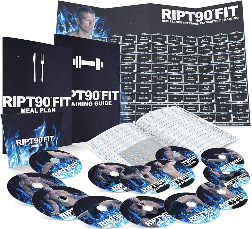 RIPT90 FIT عبارة عن 12 تمرينًا جديدًا ومكثفًا على 12 قرص DVD بالإضافة إلى تمرين التمدد الإضافي. احصل على نتائج رائعة في حرق الدهون وبناء الكتلة العضلية في 30 دقيقة فقط يوميًا