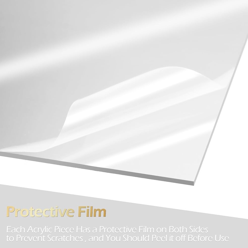 PROTECTIVE FILM: Each plastic sheet comes with a clear protective film on the mirror side of the sheet to prevent scratches during shipping; be sure to peel off the protective film before using the acrylic sheet.