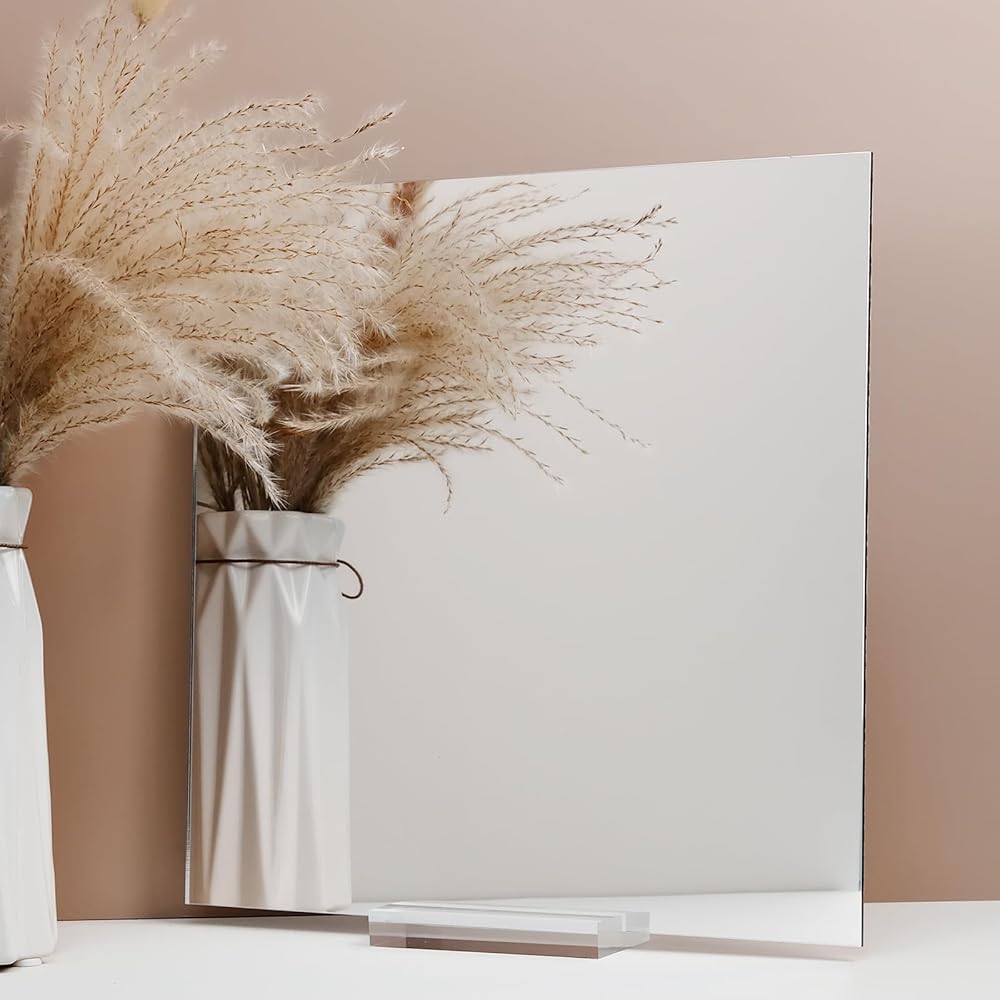STRONG AND DURABLE PLASTIC SHEET: Our sliver mirror acrylic sheet is made of high quality acrylic material with a thickness of 1/8 inch (3 mm), which is structurally strong and can provide long-lasting service.