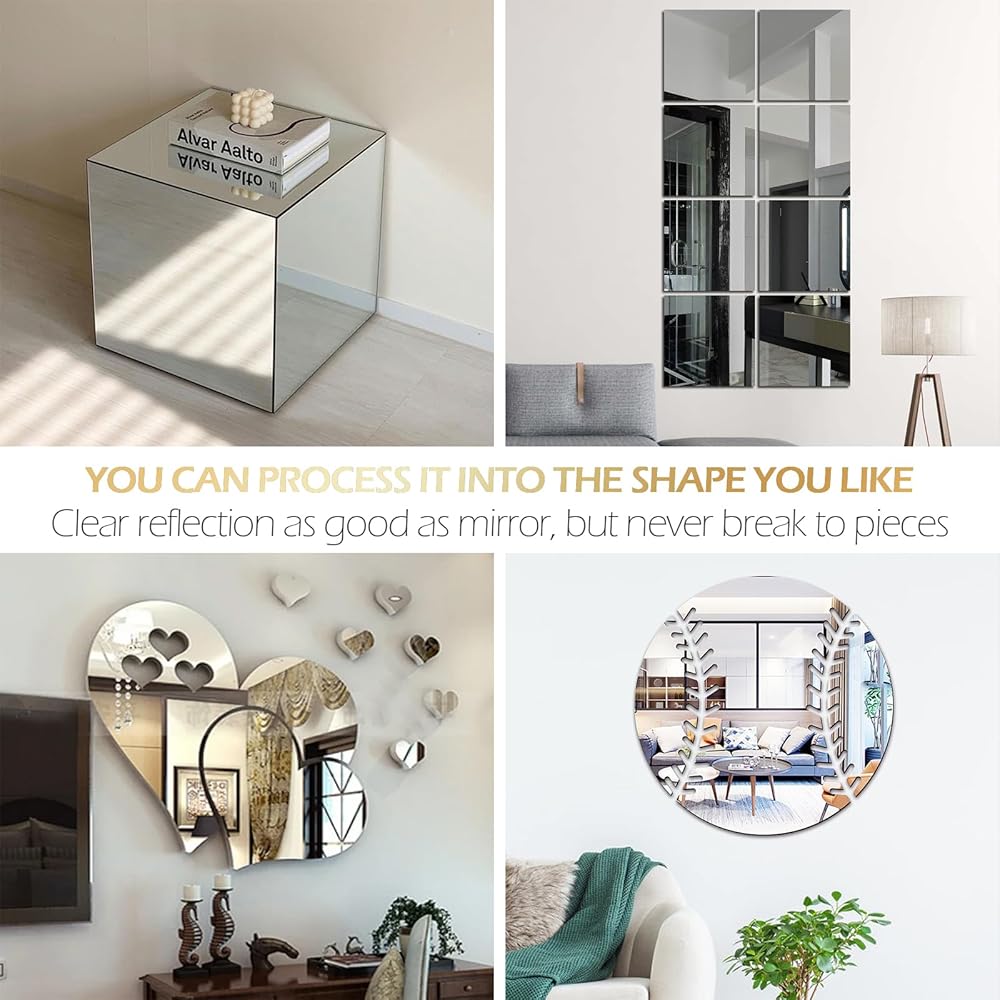PACKAGE INCLUDES: You will receive 4 pieces 12 x 12 inch sliver mirrored acrylic sheets, 3mm thick. These acrylic plexiglass sheet can be can be sawed, drilled, printed, cut, and engraved for your DIY projects!