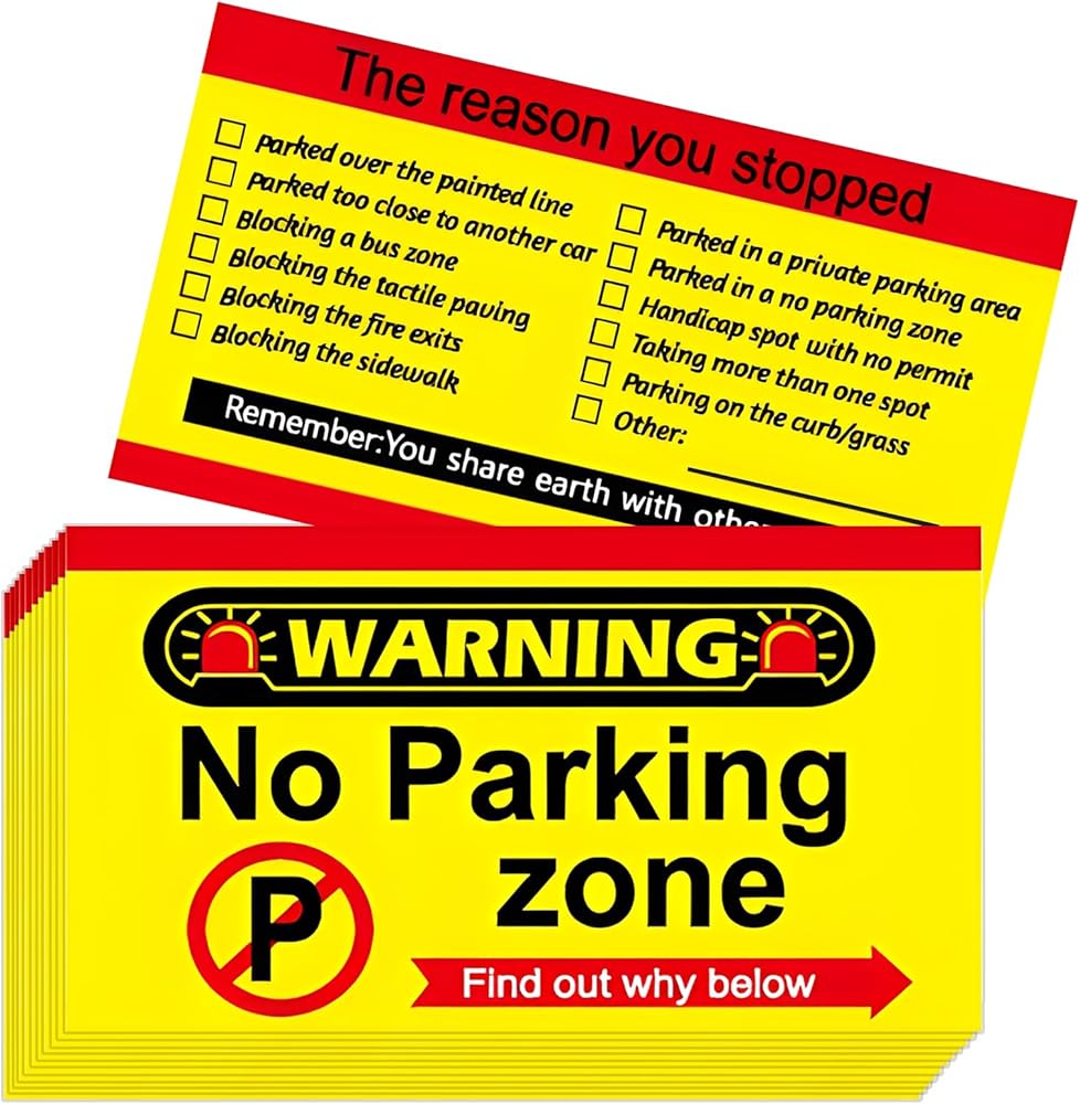 【Suitable size】:The card measures 3.5 x 2 inches, easy to carry around. When you see a parking violation, you only need to mark the reason for the violation and stick the card on the windshield of the parked vehicle to alert the violator