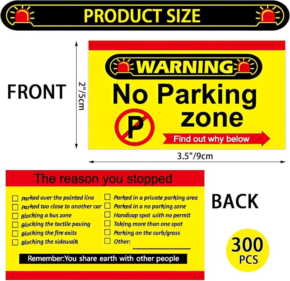 300PCS Bad Parking Cards, No Parking Zone Cards, 3.5 x 2 Inches Bad Parking Cards with Multi Violation Reasons