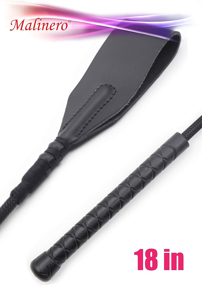 18-inch riding crop crafted from durable faux leather for both practical equestrian use and cosplay fun.