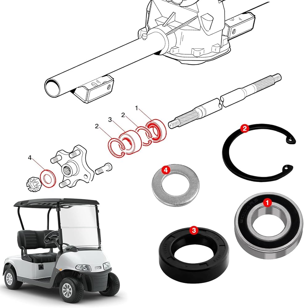 ⛳【Package Include】2 X EZGO Bearings, 2 X EZGO oil seals, 4 X EZGO snap rings, 2 X EZGO washers. A complete set for both passenger and driver side.