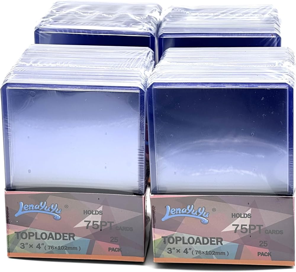 Lenayuyu 1 Display Box of 100pcs 3" x 4" Clear Super Thick Top Loaders Toploaders 75PT+ 100pcs Card Sleeves Soft Sleeves for Cards Baseball Card Protectors Penny Sleeves + Toploaders